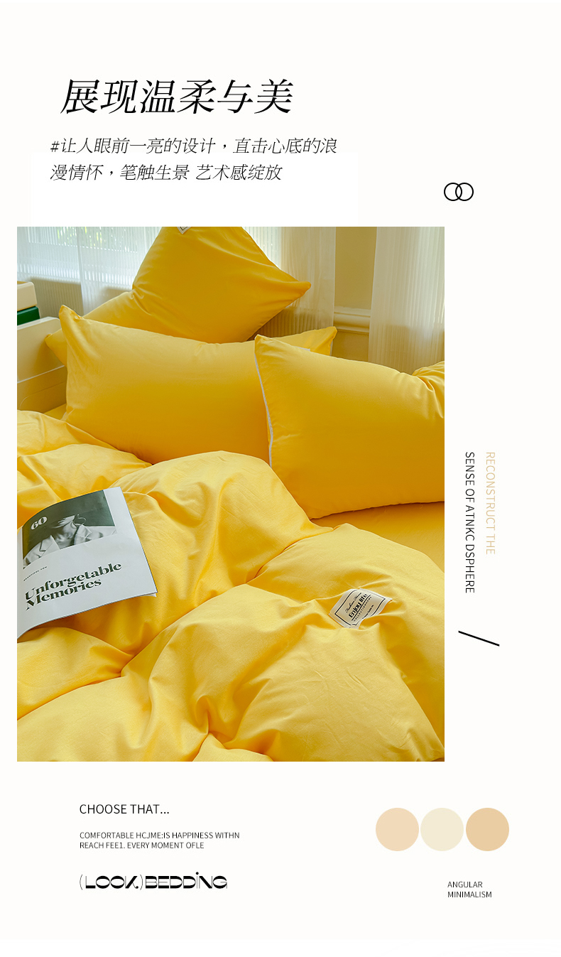 当前位置: 91家纺网 > 商品网购 > 床品套件 > 四件套 > 全棉普通四件套 > 花香四季家纺 2025新款全棉13376纯棉素色四件套系列床单床笠枕套单品 姜黄