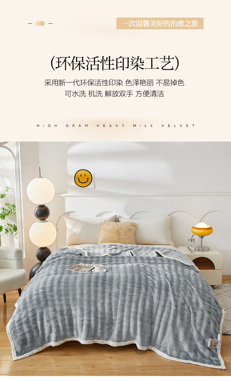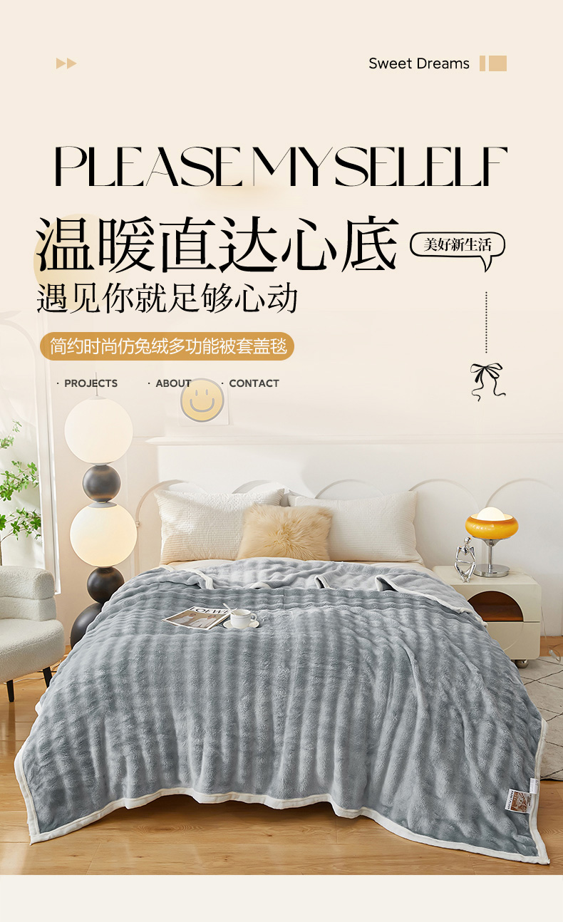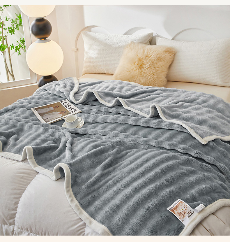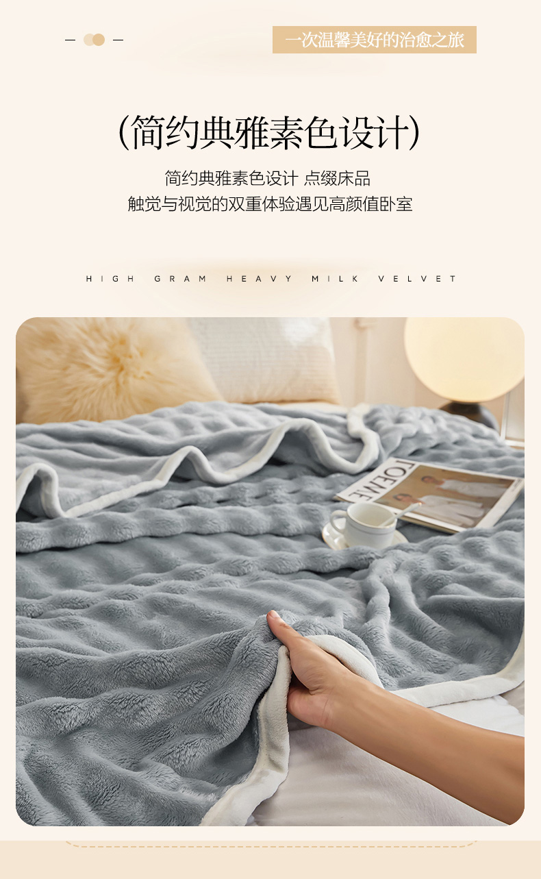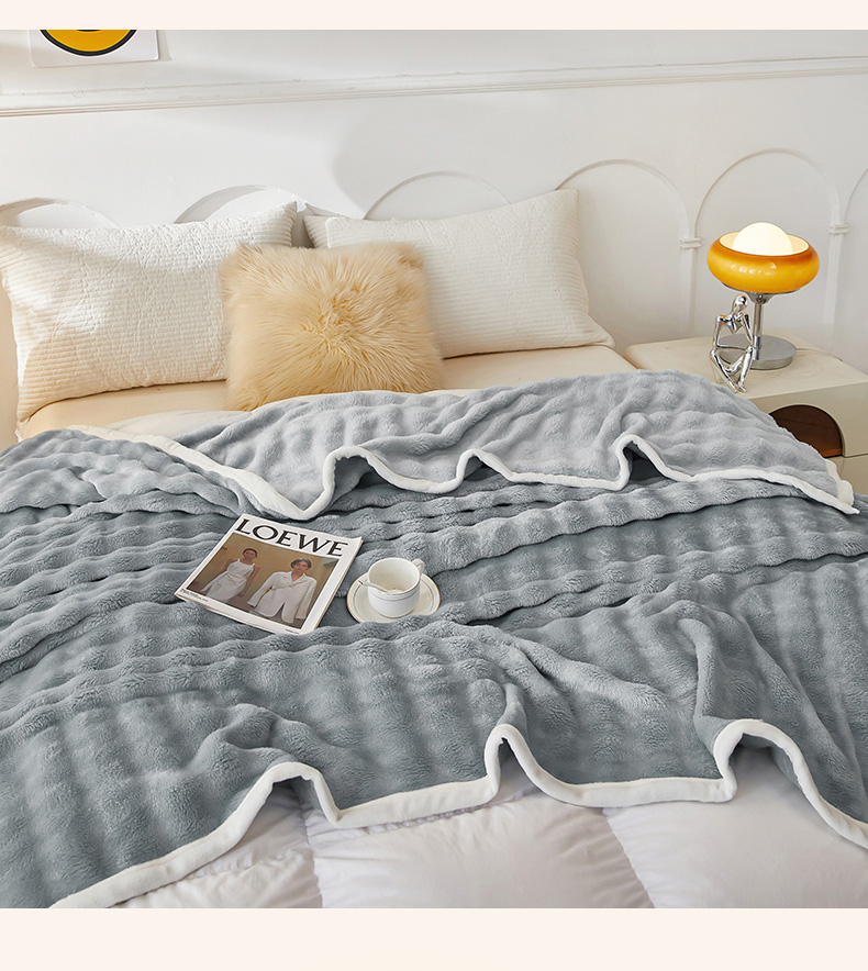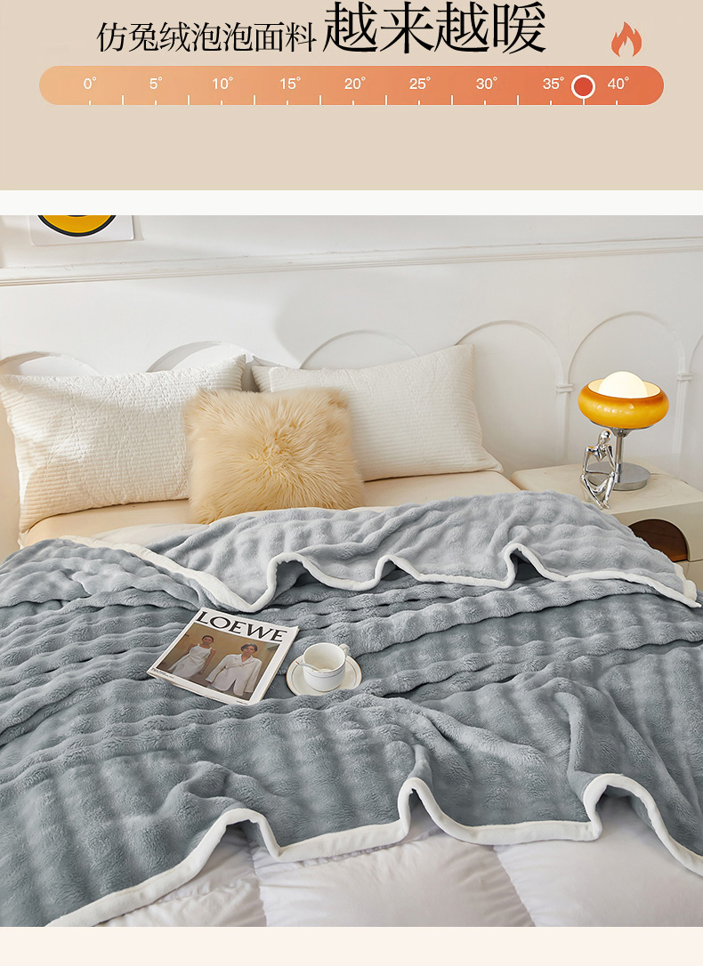 七里香 2025新款A类跨境外贸托卡斯兔毛绒牛奶绒毛毯泡泡毯多功能盖毯 泡泡毯-浅灰