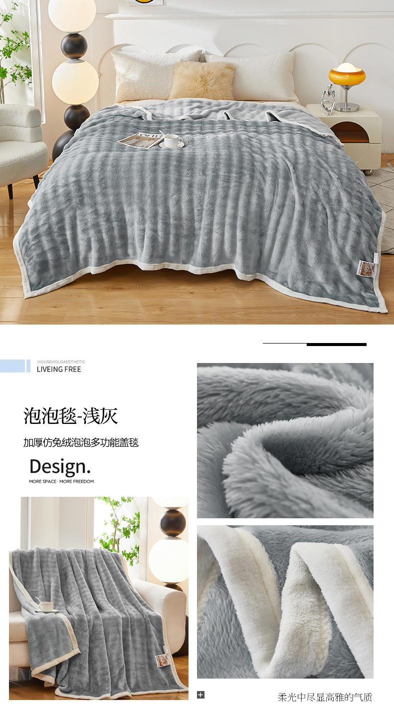 商品名称:七里香 2025新款A类跨境外贸托卡斯兔毛绒牛奶绒毛毯泡泡毯多功能盖毯 泡泡毯-浅灰