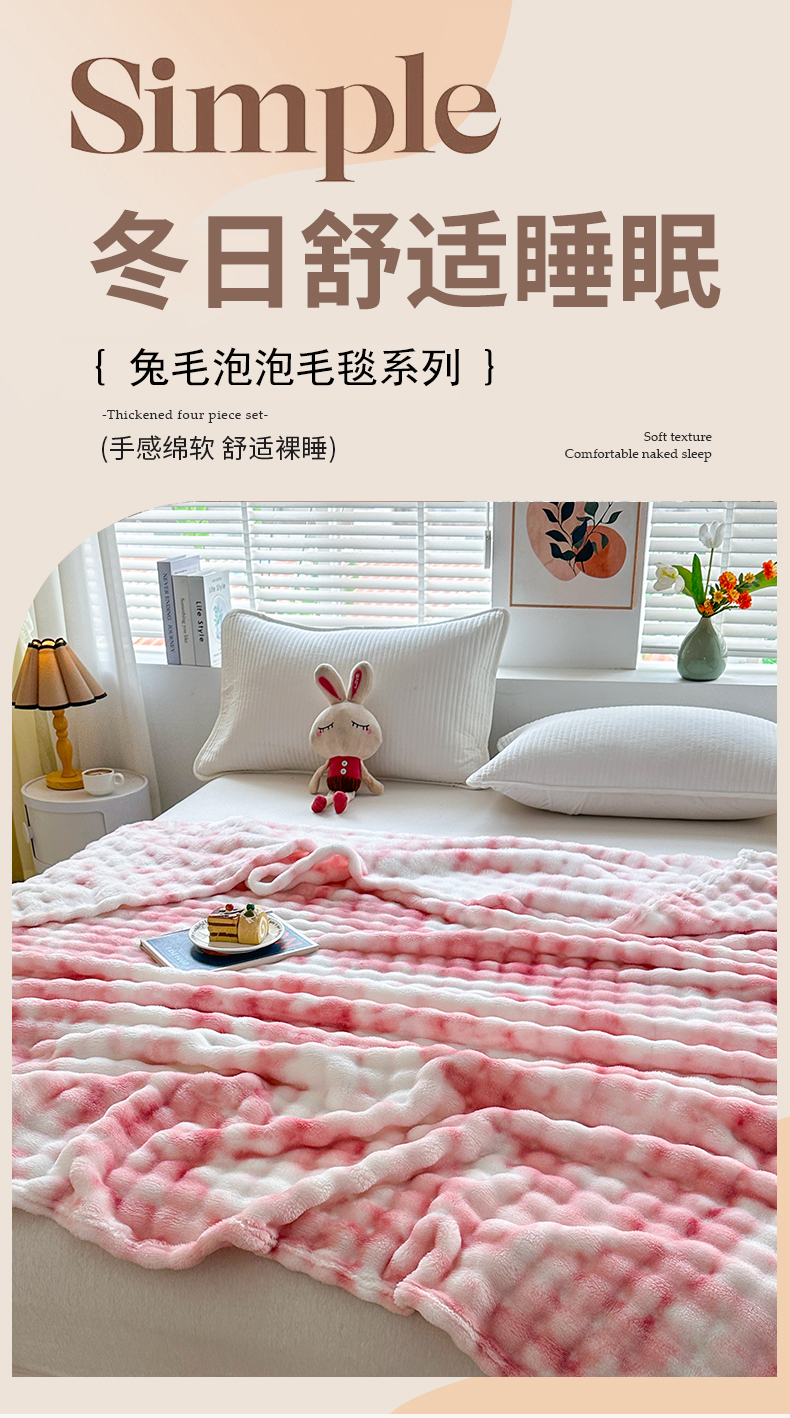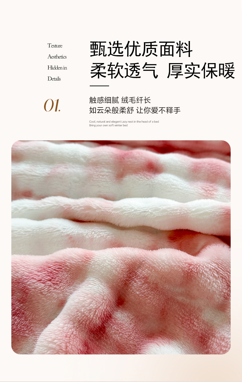 当前位置: 91家纺网 > 商品网购 > 毛毯休闲毯绒毯 > 毛毯 > 肖恩毯业 2025新款托斯卡纳兔毛绒炫彩毛毯泡泡绒牛奶绒毯沙发盖毯跨境专供外贸出口可定制尺寸量大可谈 炫彩粉