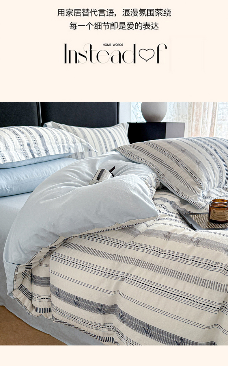 当前位置: 91家纺网 > 商品网购 > 床品套件 > 四件套 > 提花四件套 > 眠博士 2025新款A类立体穿线提花纯棉四件套 提花股线套件-素简 蓝