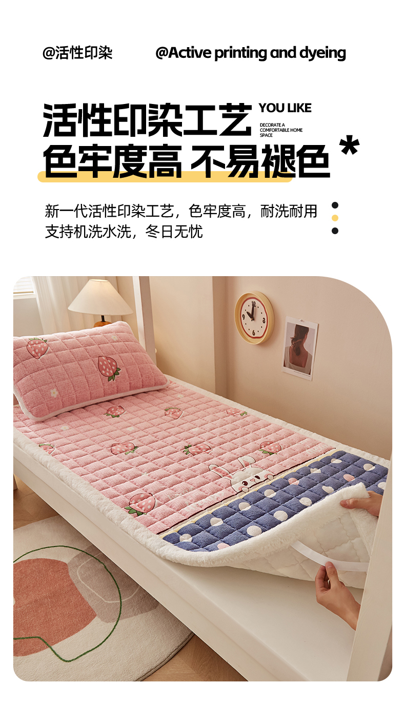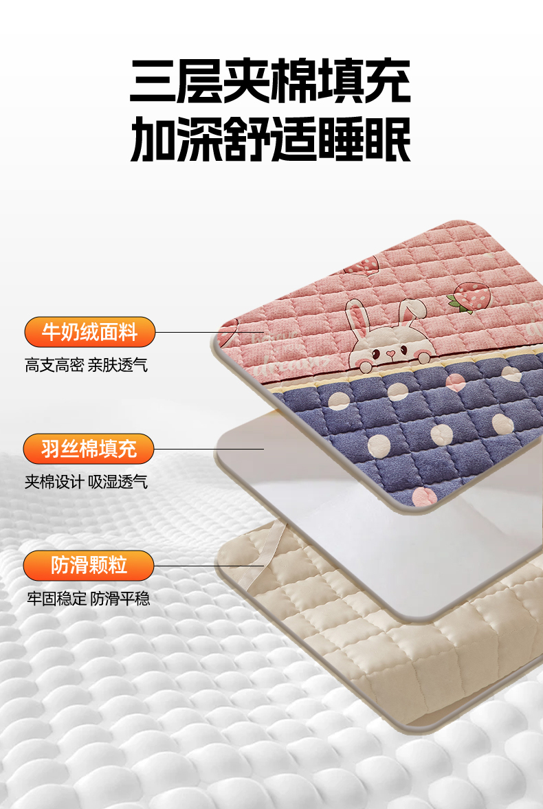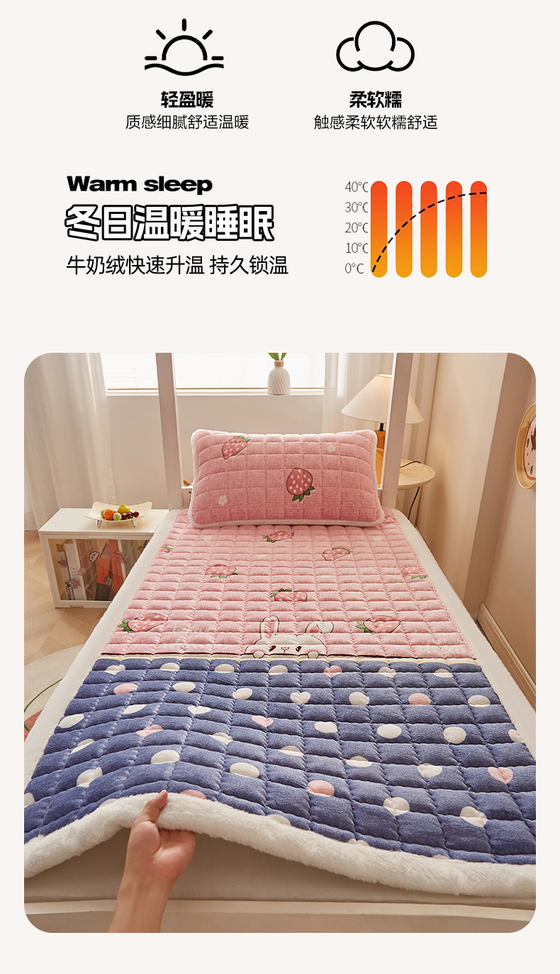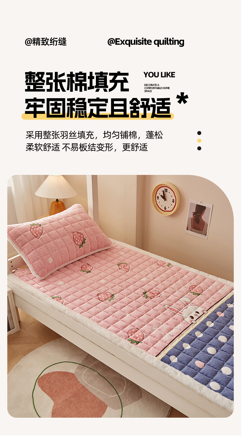 当前位置: 91家纺网 > 商品网购 > 床垫/床褥 > 普通床垫 > 东宇床垫 2025新款A类牛奶绒印花直角防滑床垫床褥三件套-学生款 草莓兔兔
