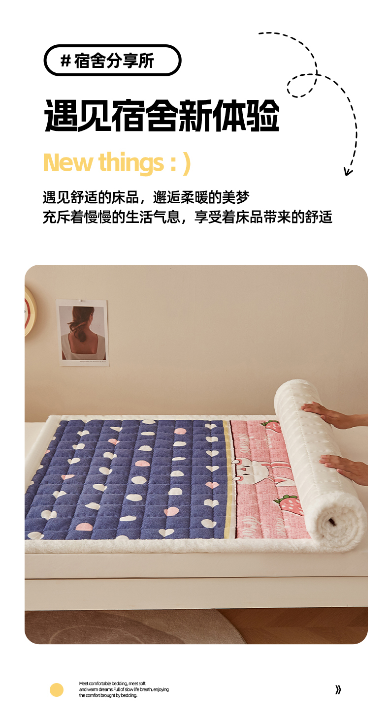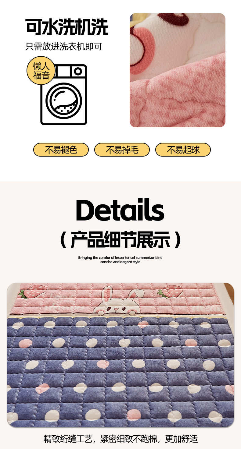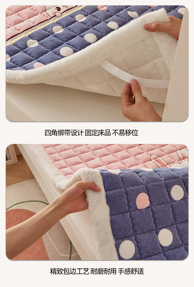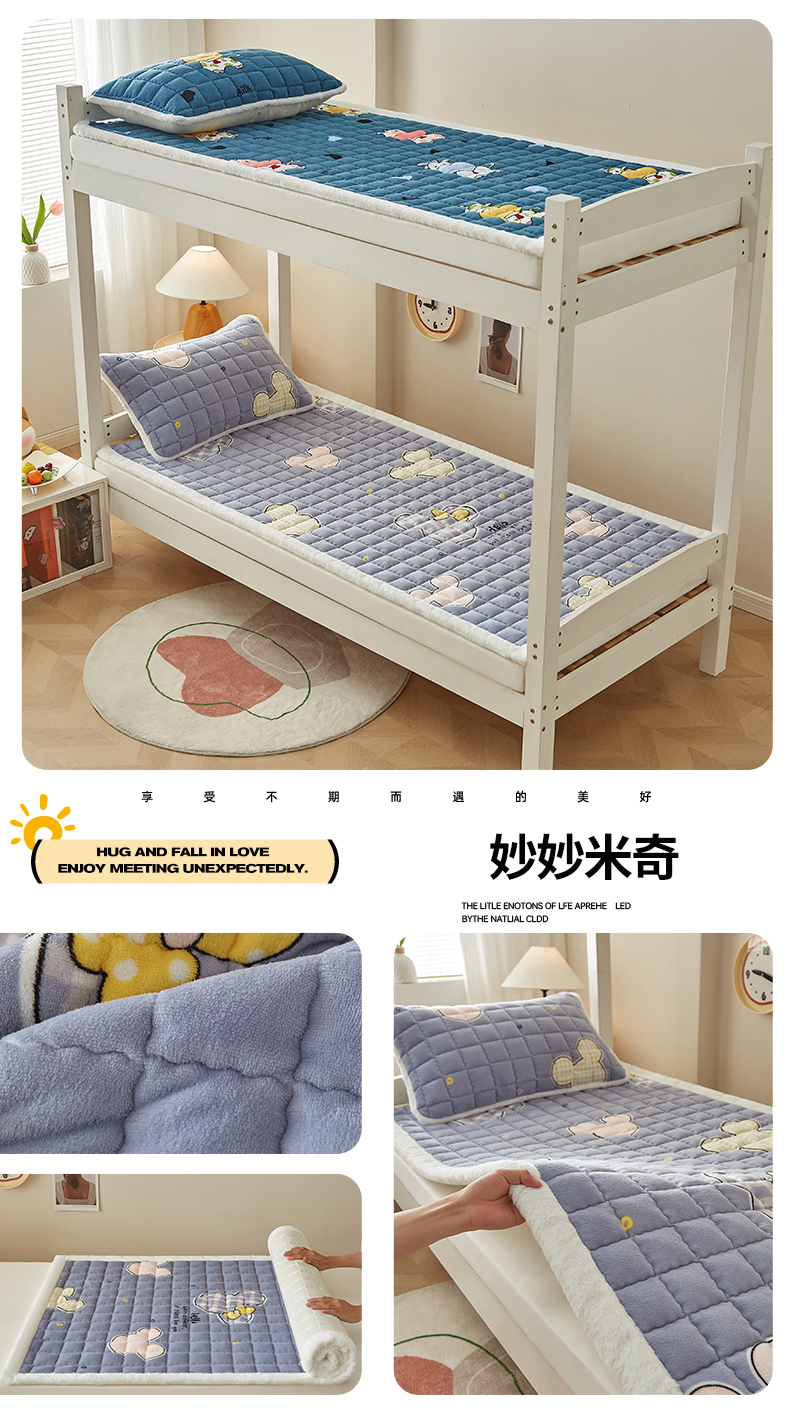 当前位置: 91家纺网 > 商品网购 > 床垫/床褥 > 普通床垫 > 东宇床垫 2025新款A类牛奶绒印花直角防滑床垫床褥三件套-学生款 草莓兔兔