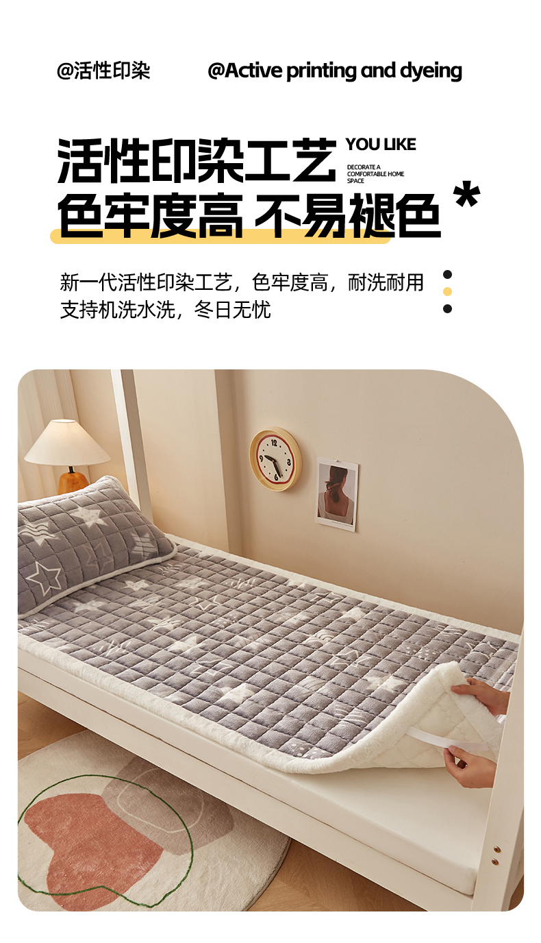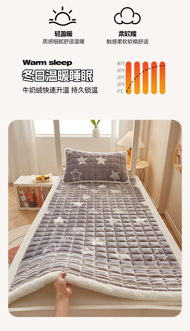 当前位置: 91家纺网 > 商品网购 > 床垫/床褥 > 普通床垫 > 东宇床垫 2025新款A类牛奶绒印花直角防滑床垫床褥三件套-学生款 星辰璀璨