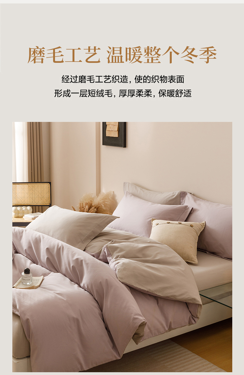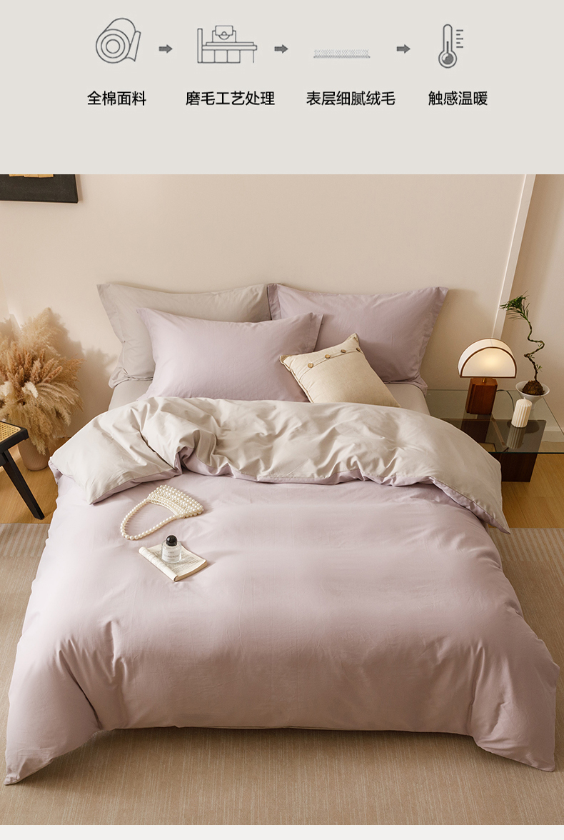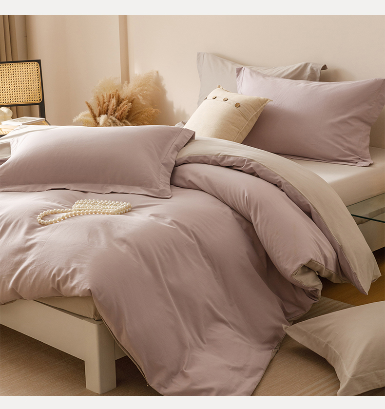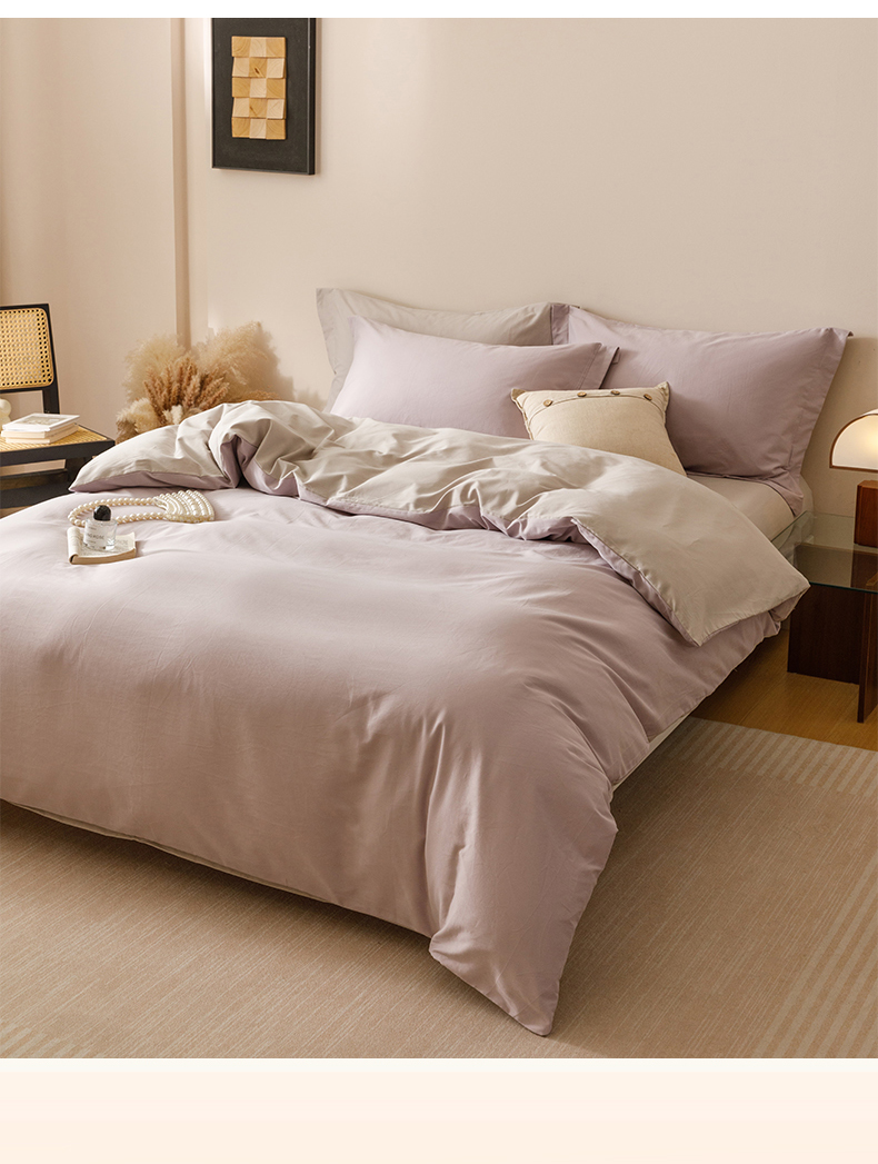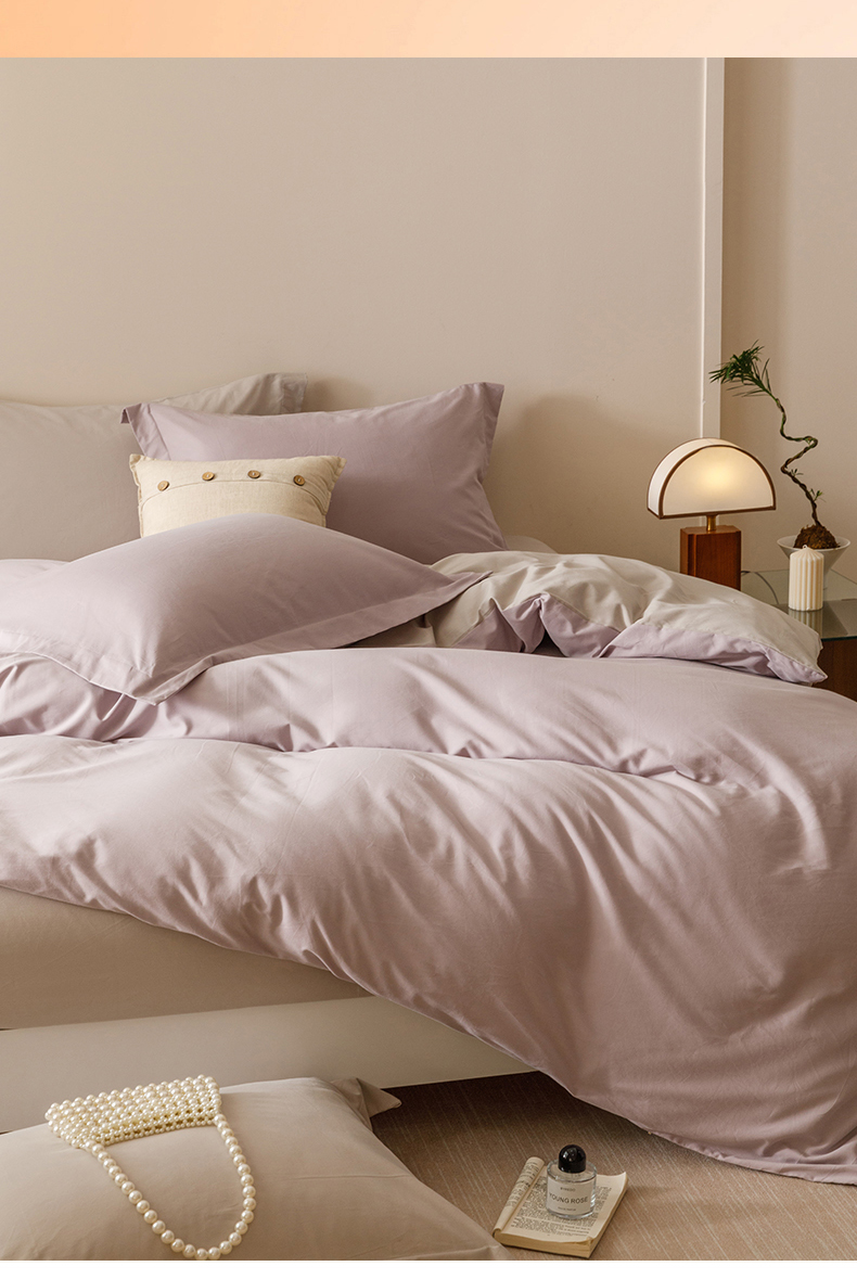 当前位置: 91家纺网 > 商品网购 > 床品套件 > 四件套 > 长绒棉四件套 > 爱思佳 2025新款A类全棉60s长绒棉纯棉磨毛纯色拼色系列四件套 紫雾灰