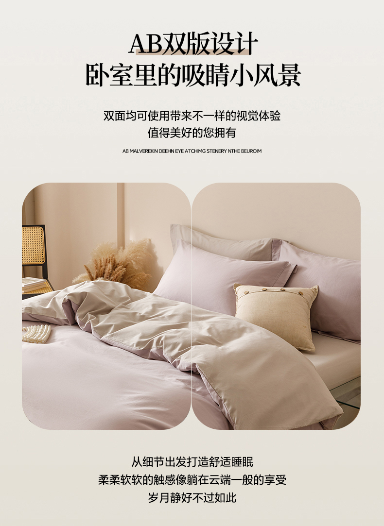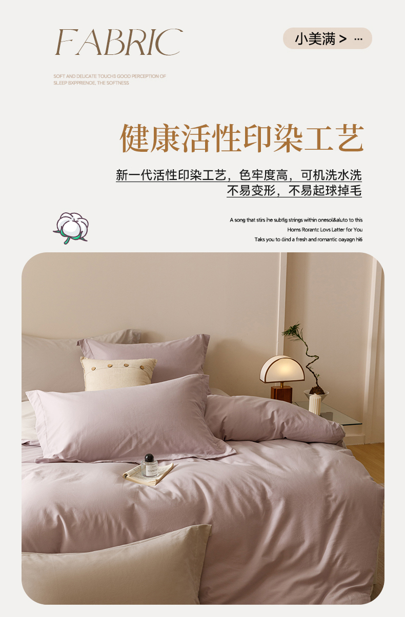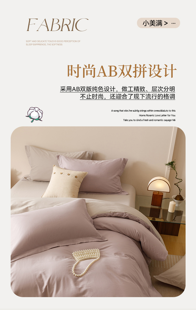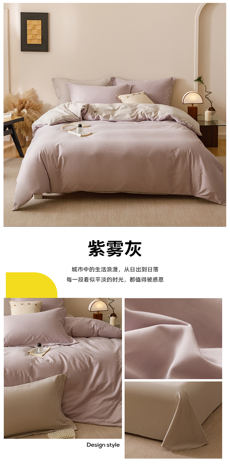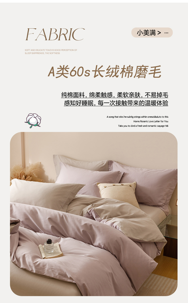当前位置: 91家纺网 > 商品网购 > 床品套件 > 四件套 > 长绒棉四件套 > 爱思佳 2025新款A类全棉60s长绒棉纯棉磨毛纯色拼色系列四件套 紫雾灰