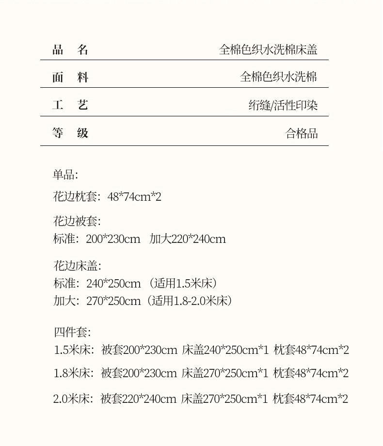 250x270cm单床盖+枕套一对