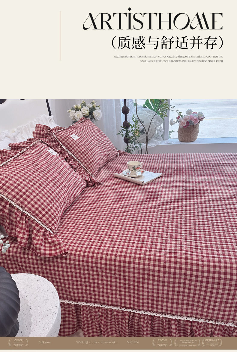 (总)菊上家纺 2026新品全棉高密水洗床盖四件套-米兰系列,米兰-红,米兰-咖,米兰-米