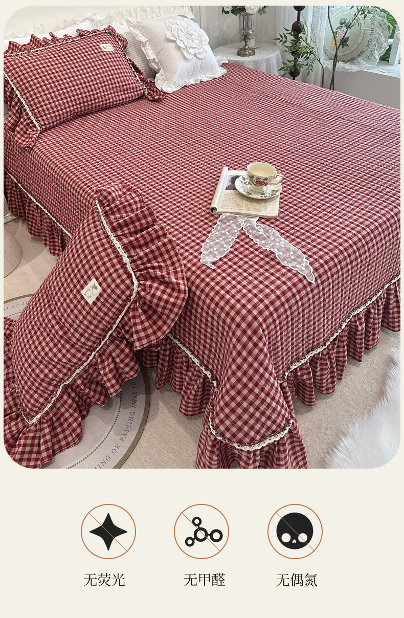 商品名称:菊上家纺 2025新款全棉纯棉色织水洗单品床盖床盖单件单床盖 卡秋莎-复古红格