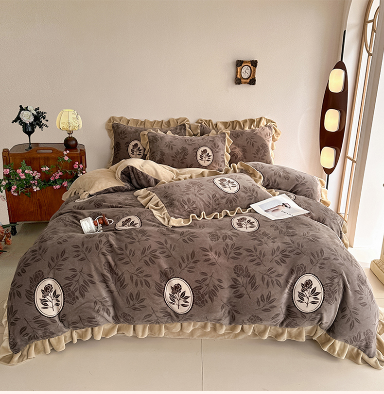 亿品2025新款直播爆款韩版赫本风高克重牛奶绒四件套床裙款 8.5斤(有买家秀加v) 花语,花语