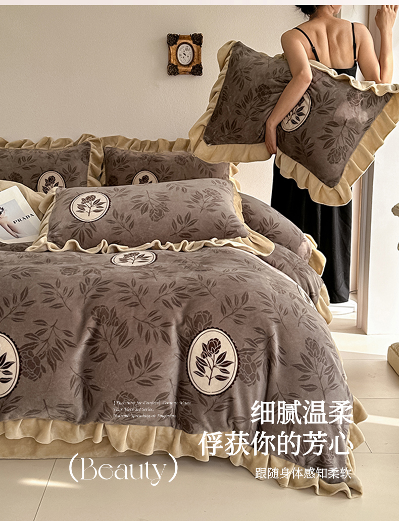 亿品2025直播爆款9.5斤牛奶绒四件套加厚保暖床裙四件套 情怀,情怀