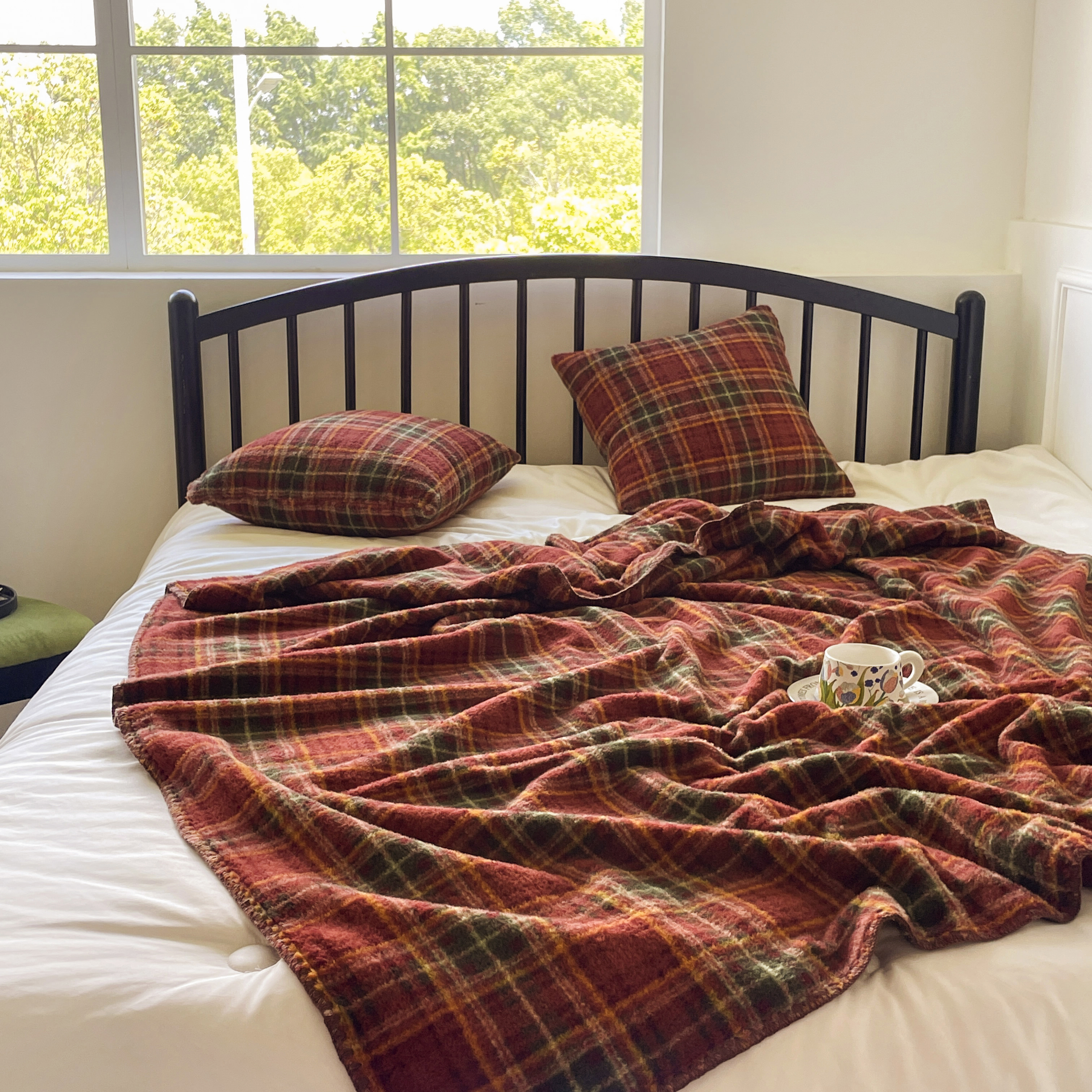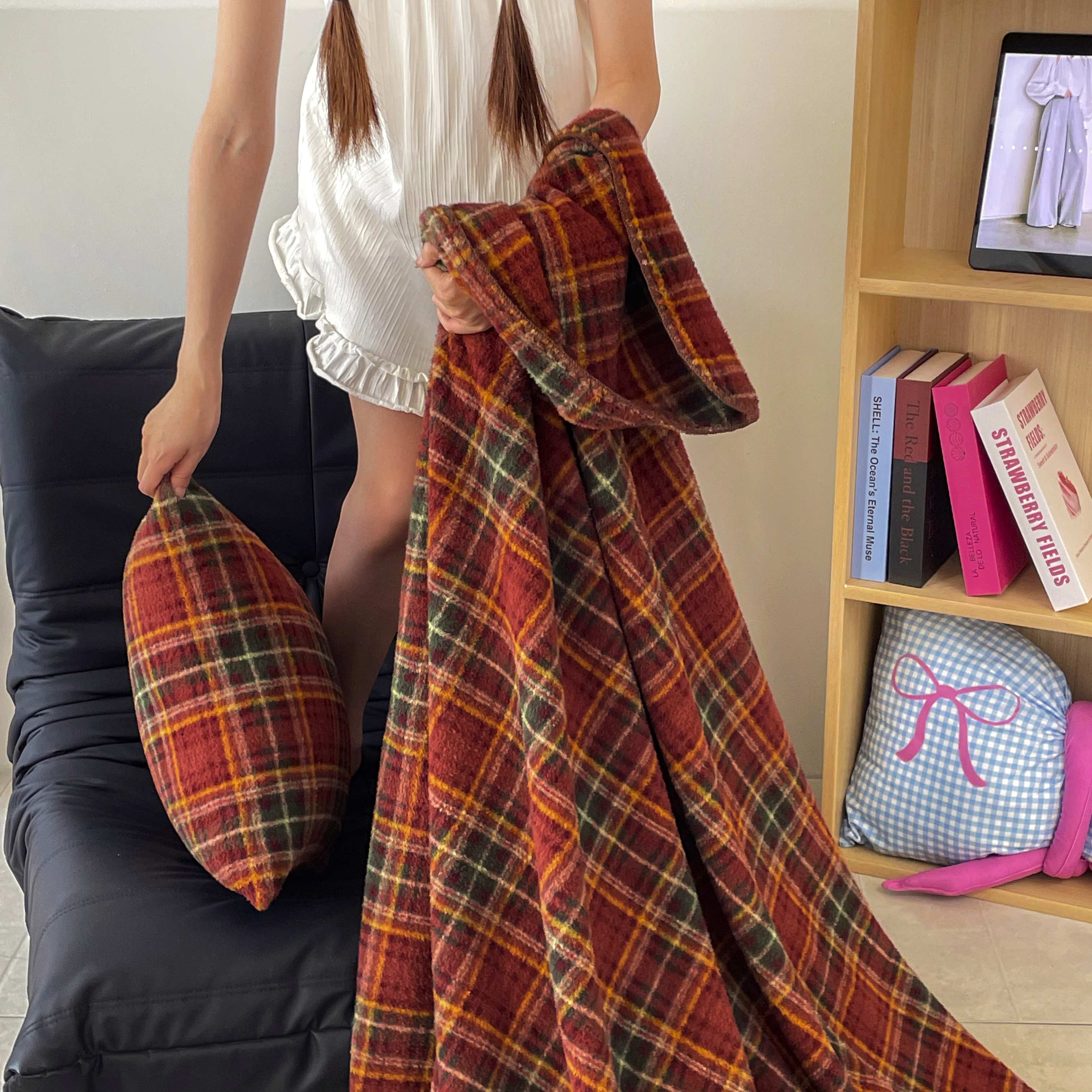 (总)十里居 2026新款lns博主风全棉纯棉色织水洗棉四件套,焦糖黑格,焦糖红格,焦糖黄格,焦糖蓝格
