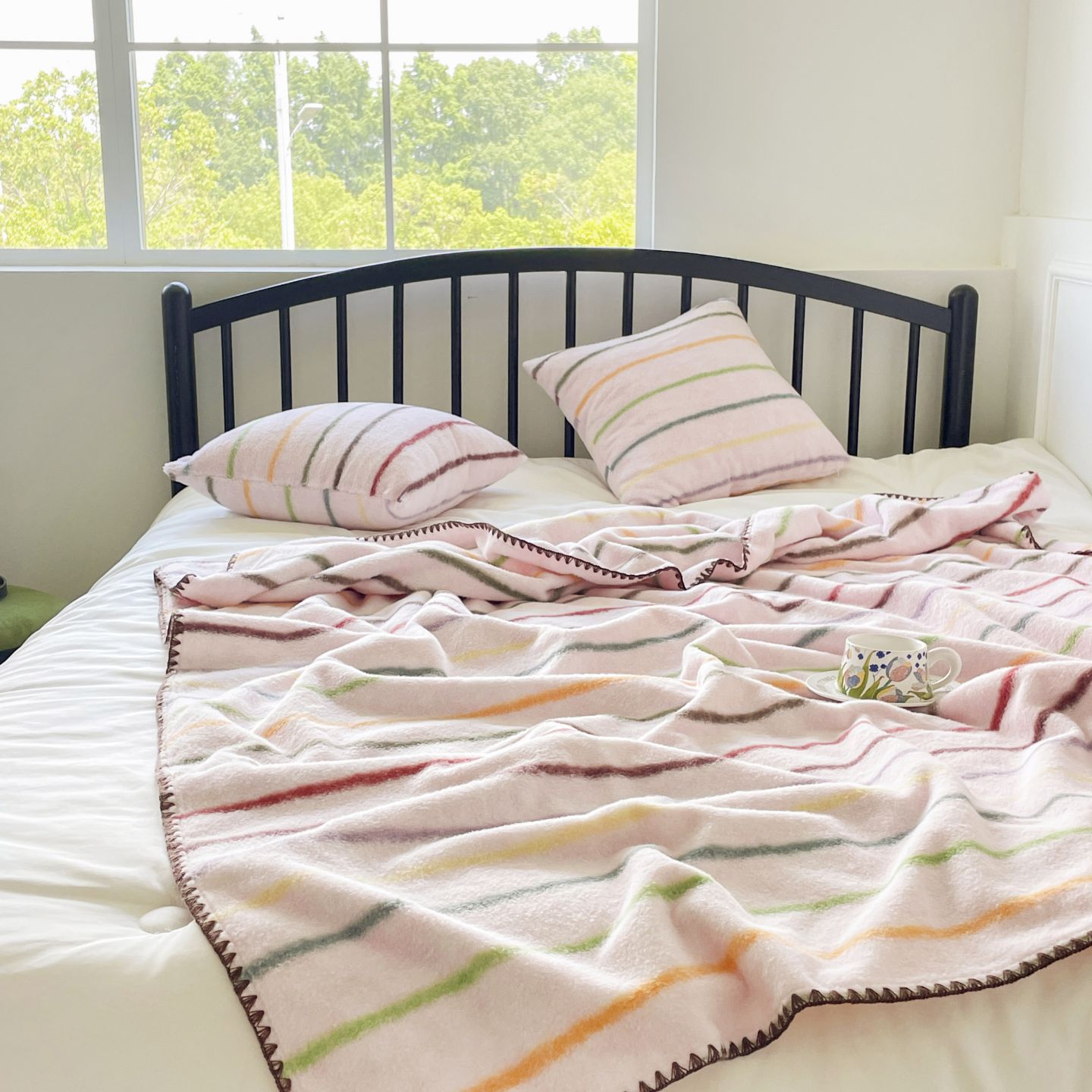 (总)十里居 2025新款三角针爱心系列雕花牛奶绒四件套,爱心格子粉,爱心格子绿,爱心格子紫