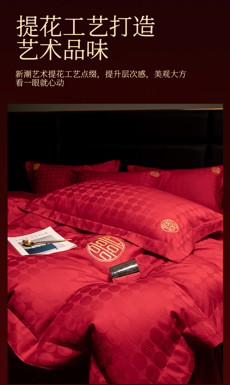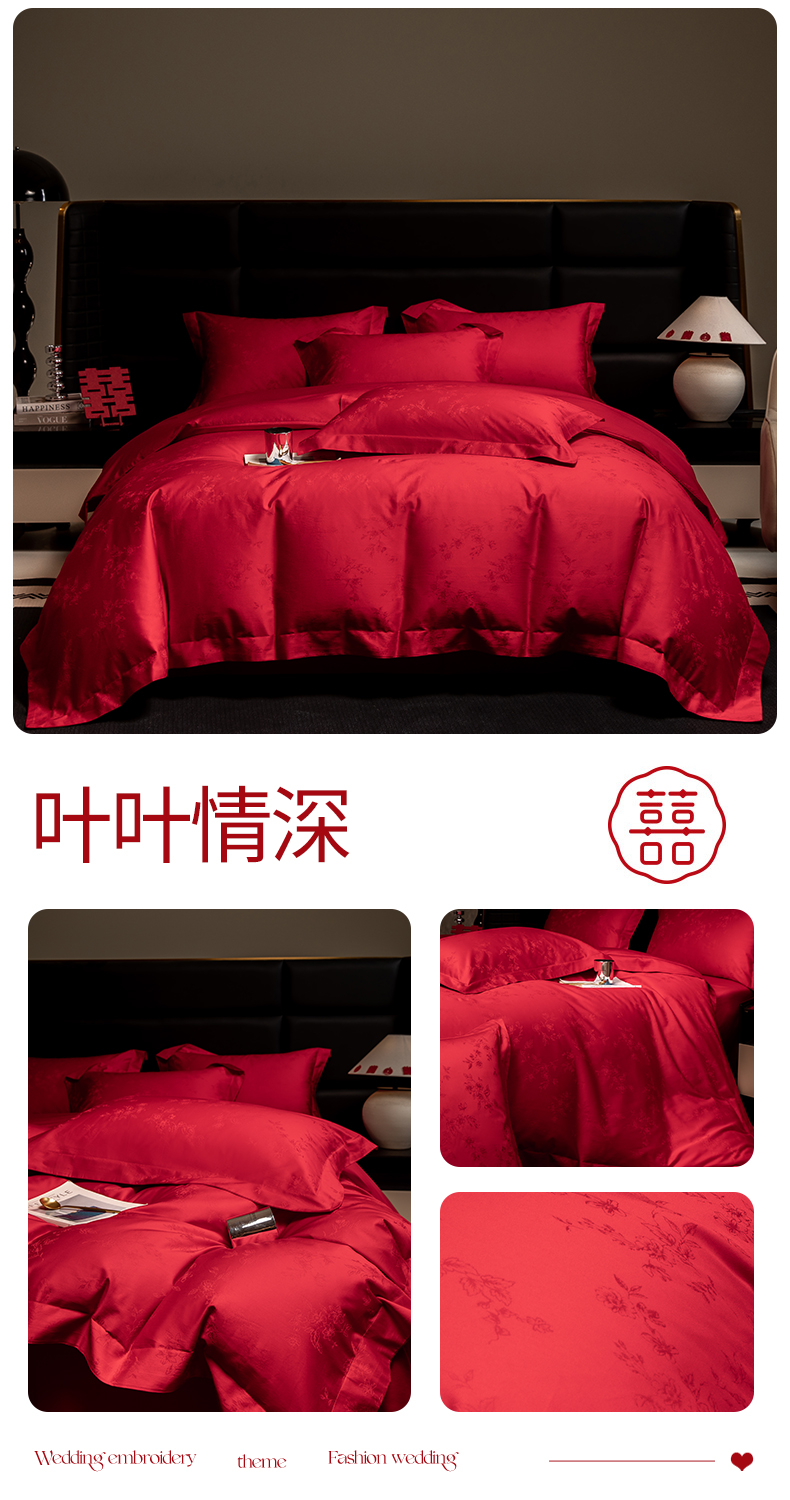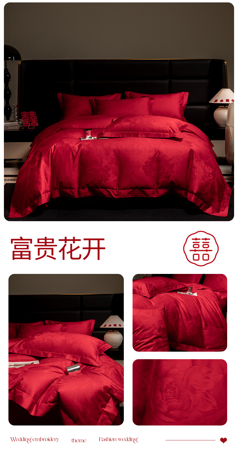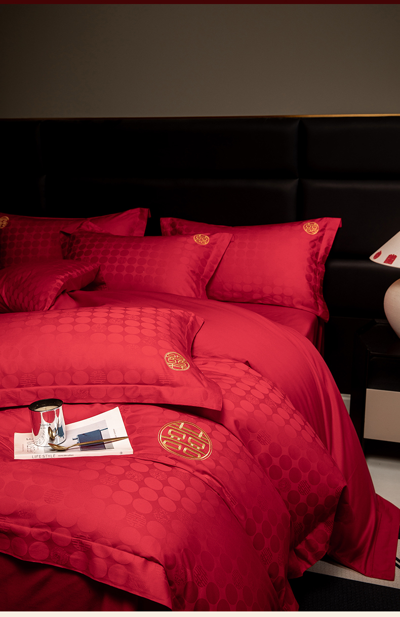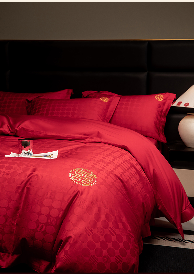 当前位置: 91家纺网 > 商品网购 > 床品套件 > 四件套 > 婚庆四件套 > 欧乐蒂 2025新款高支高密婚庆提花四件套 双囍-金