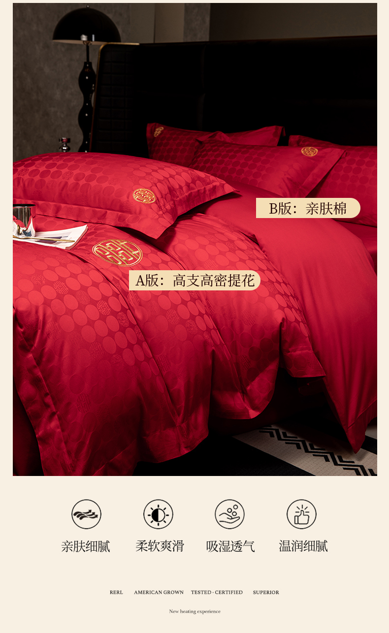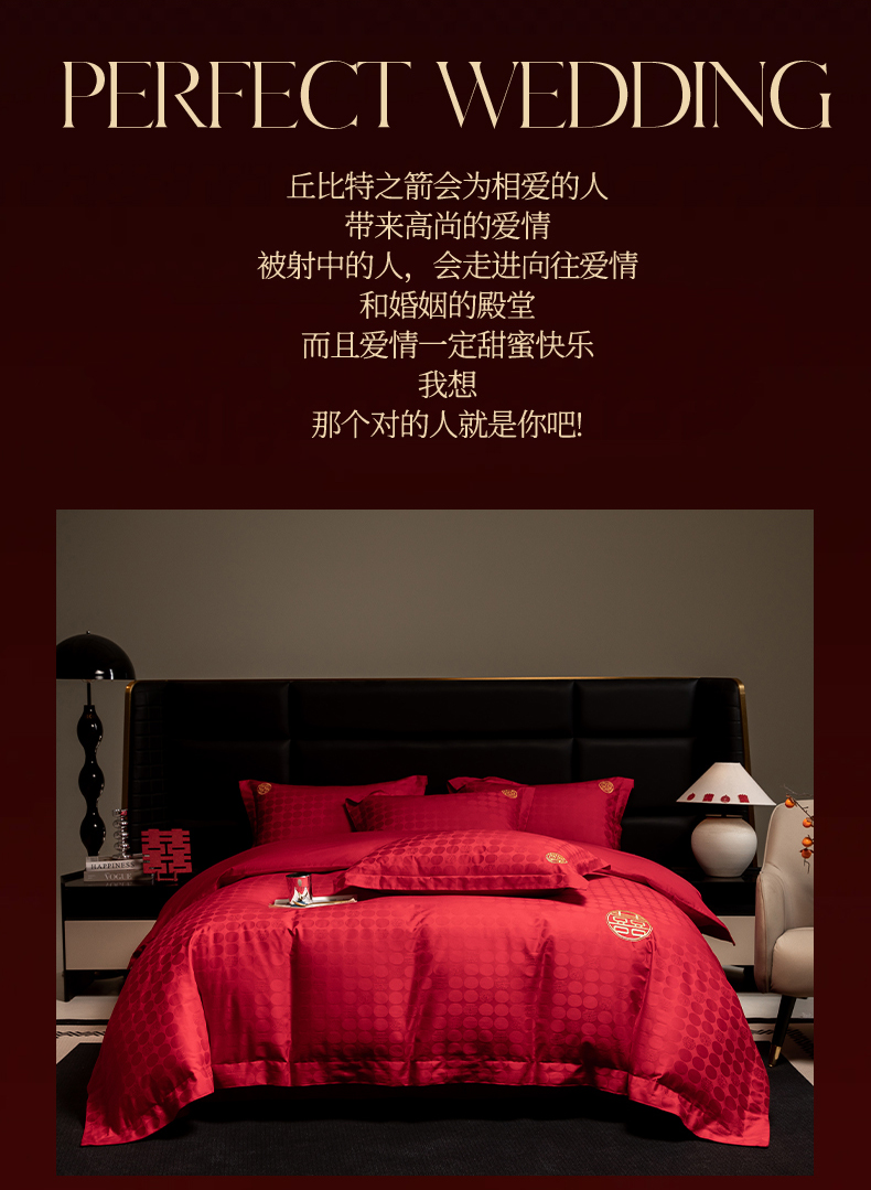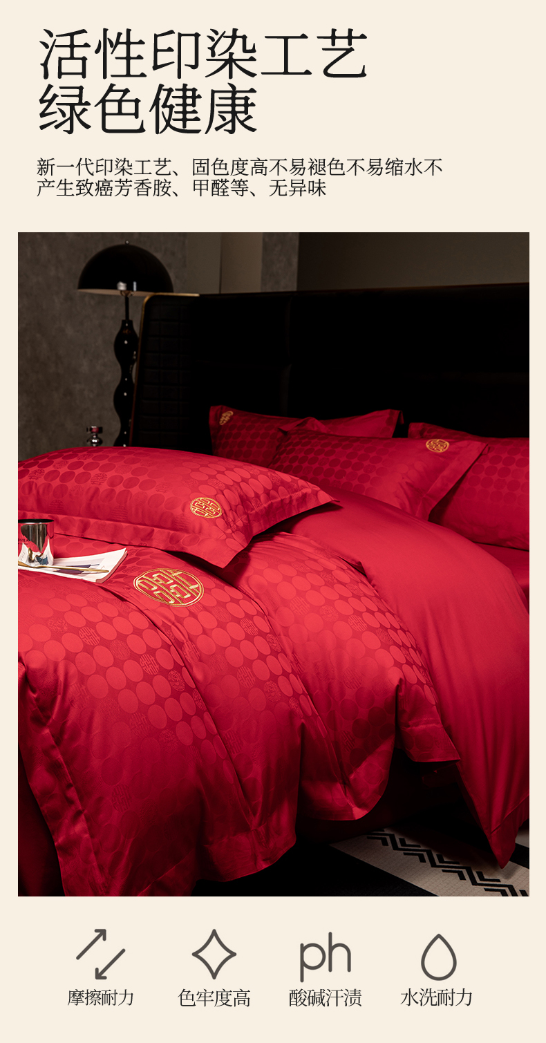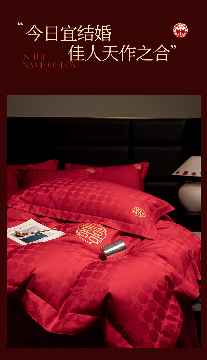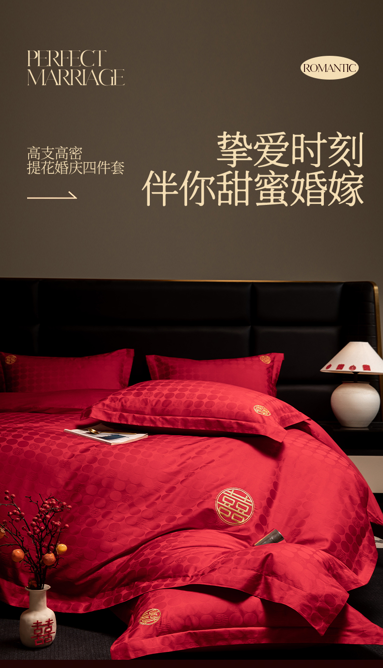 当前位置: 91家纺网 > 商品网购 > 床品套件 > 四件套 > 婚庆四件套 > 欧乐蒂 2025新款高支高密婚庆提花四件套 双囍-金