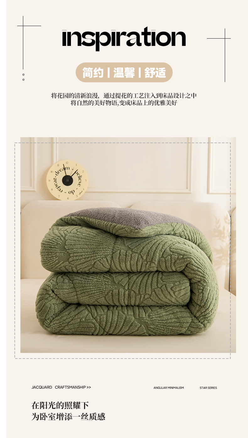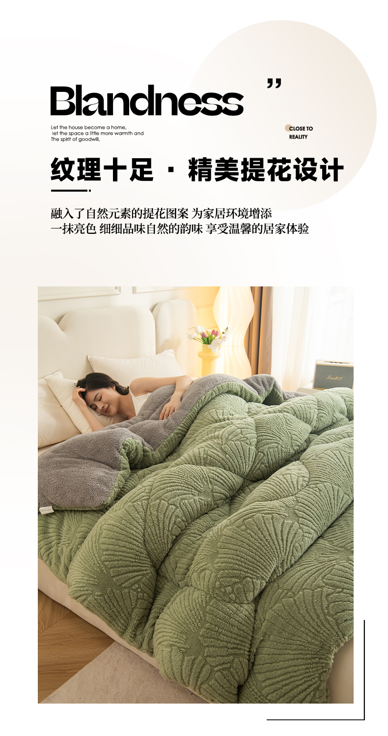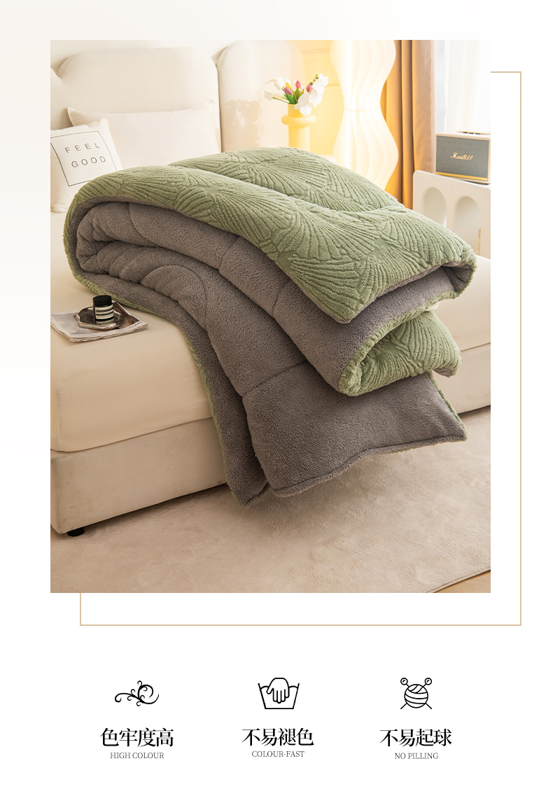 商品名称:畅销被业 2025新款跨境外贸塔芙绒羊羔绒提花系列冬被子被芯 银杏叶绿