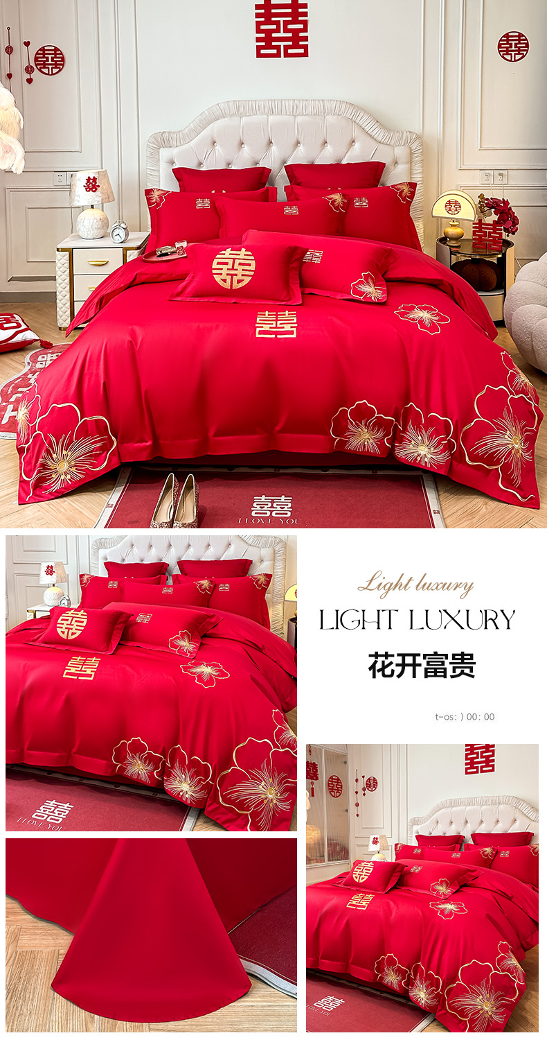 (总)欧乐蒂 2025新款亲肤棉刺绣花边婚庆四件套-浪漫花季,浪漫花季-红,浪漫花季-金