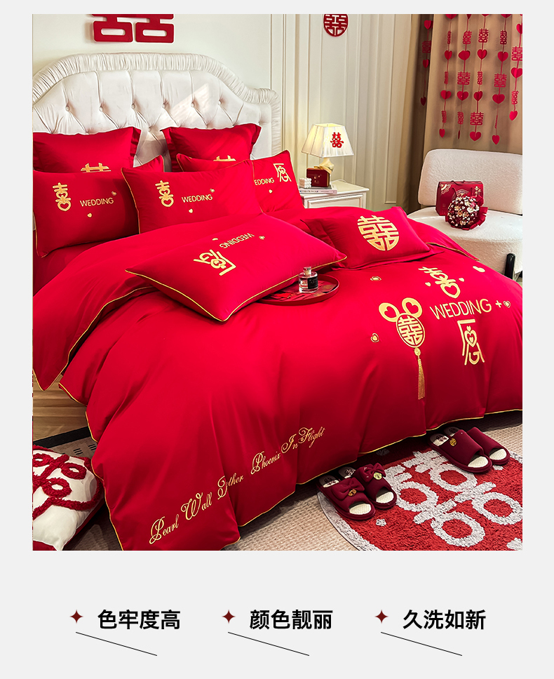 商品名称:欧乐蒂 2025新款亲肤棉婚庆刺绣四件套 喜愿