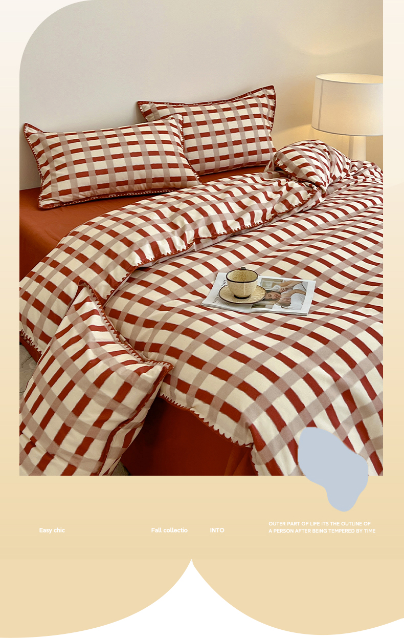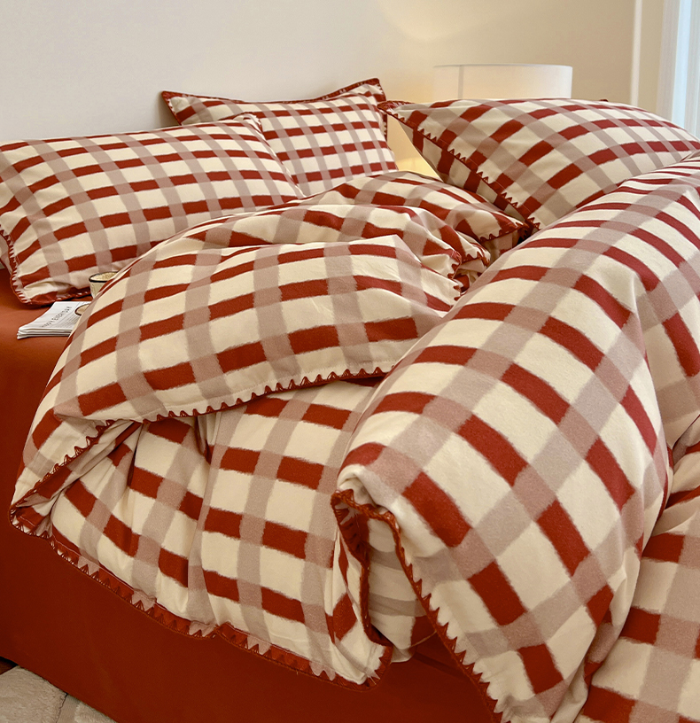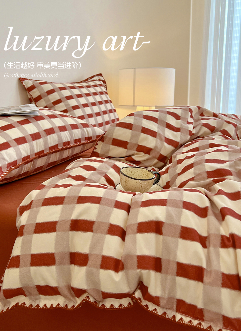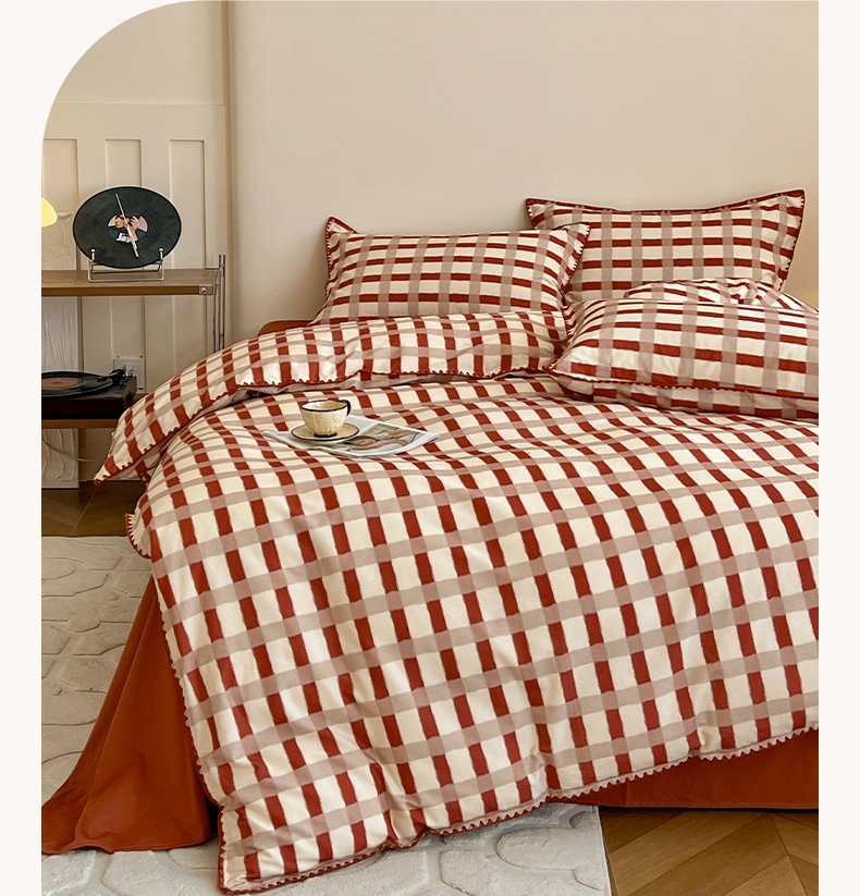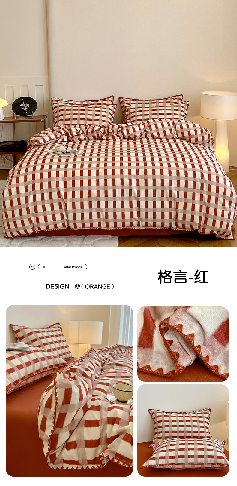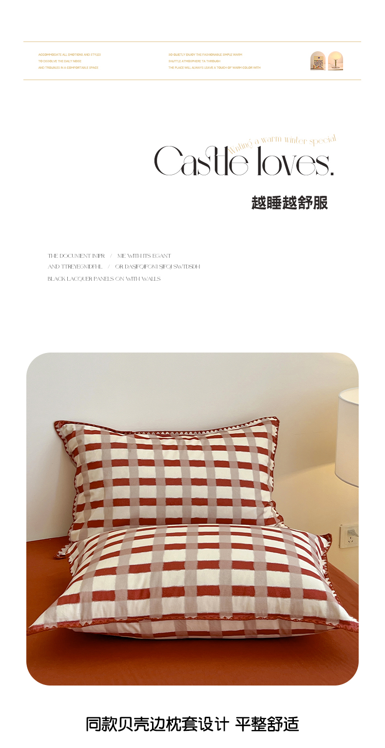 品乐家纺 2025秋冬全棉加厚磨毛贝壳边四件套 格言-红