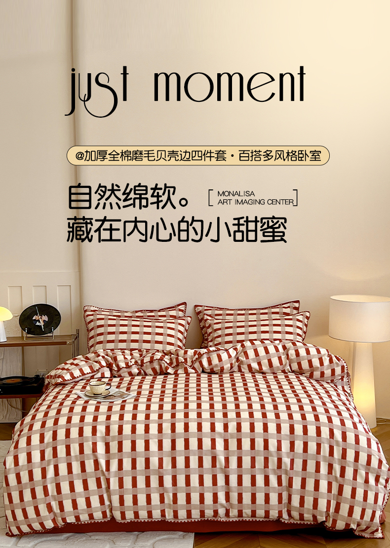 商品名称:品乐家纺 2025秋冬全棉加厚磨毛贝壳边四件套 格言-红
