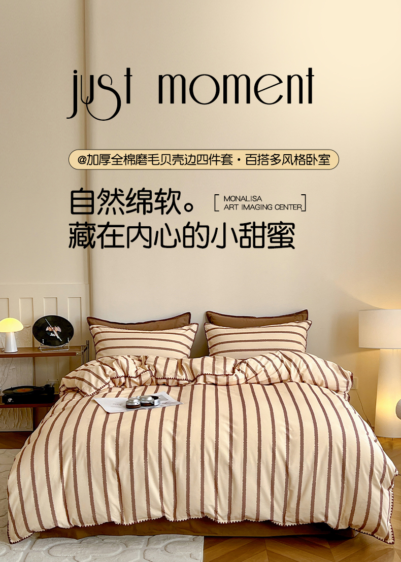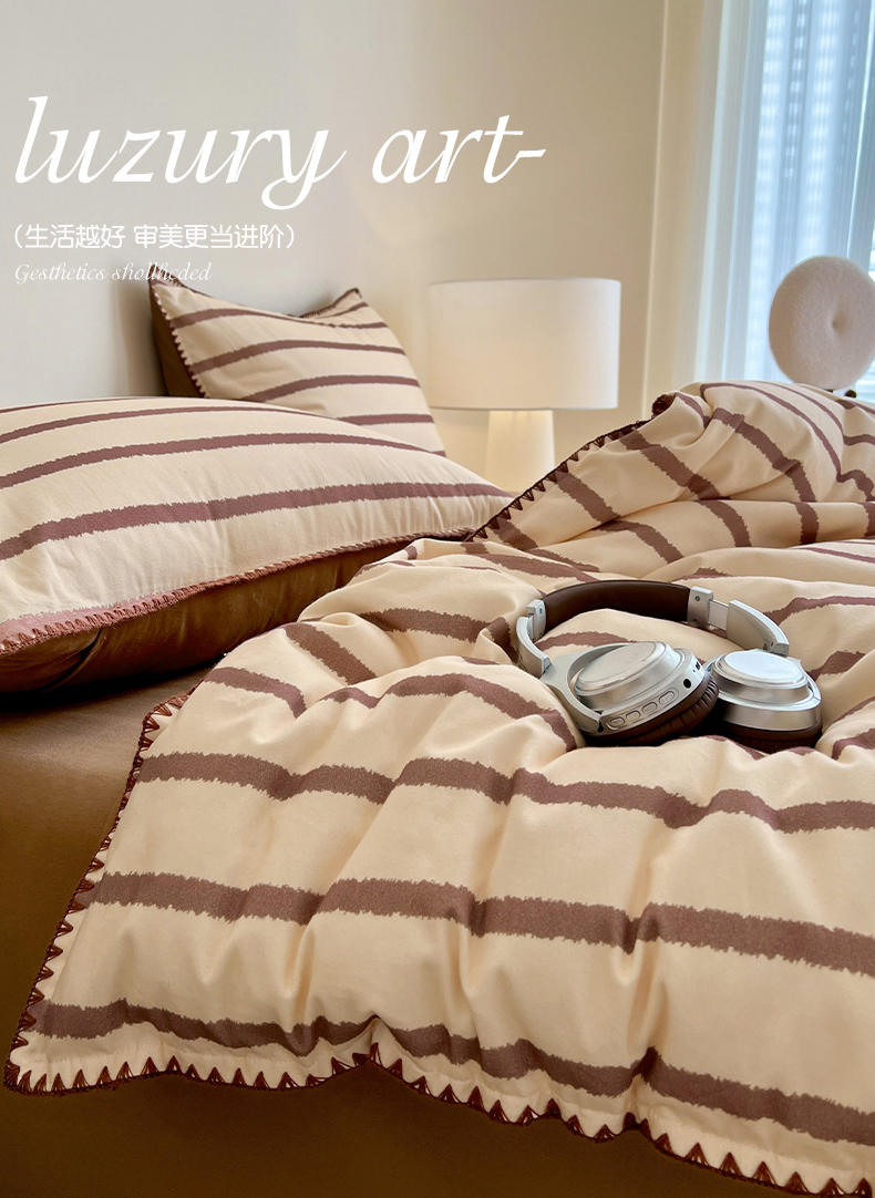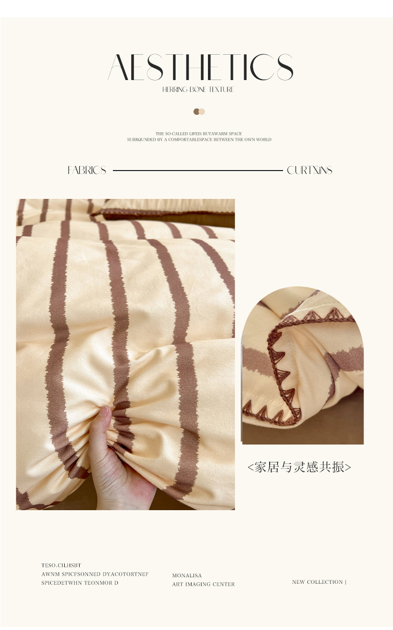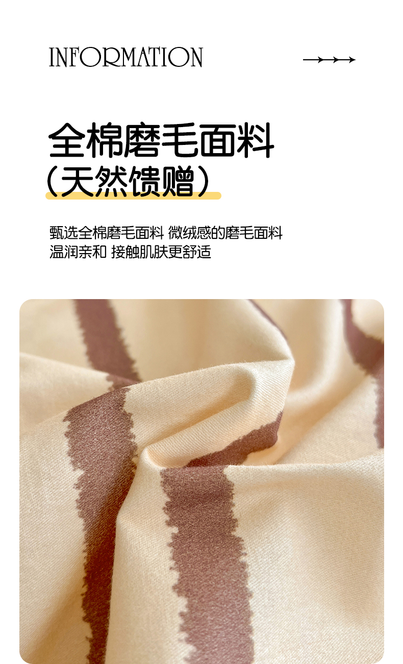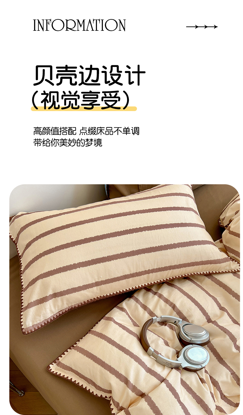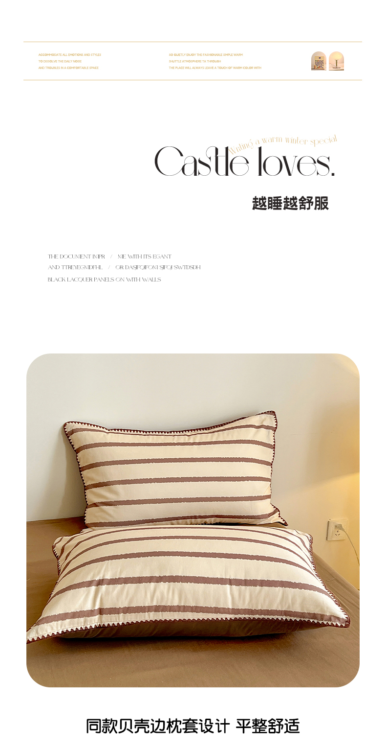 商品名称:品乐家纺 2025秋冬全棉加厚磨毛贝壳边四件套 知简-咖