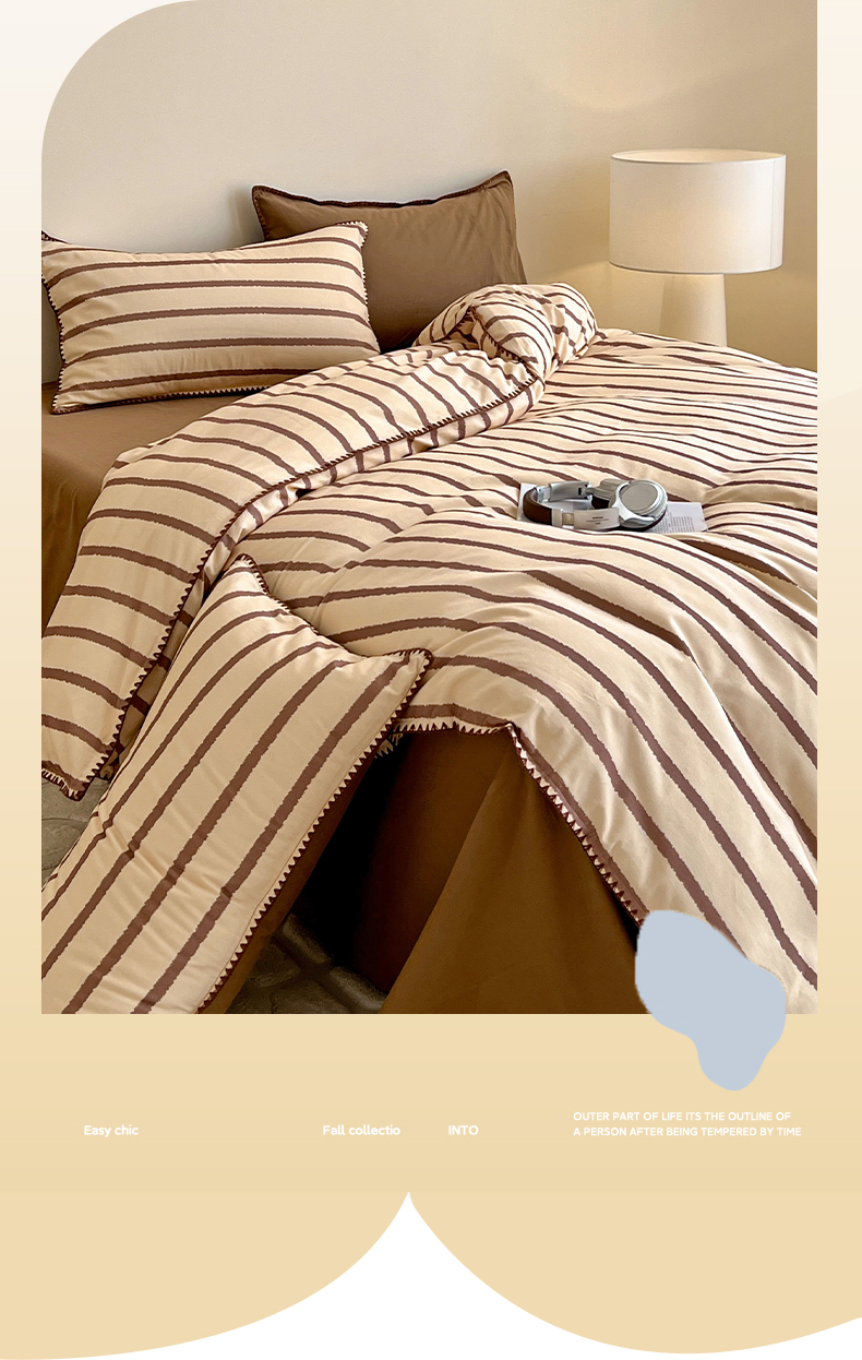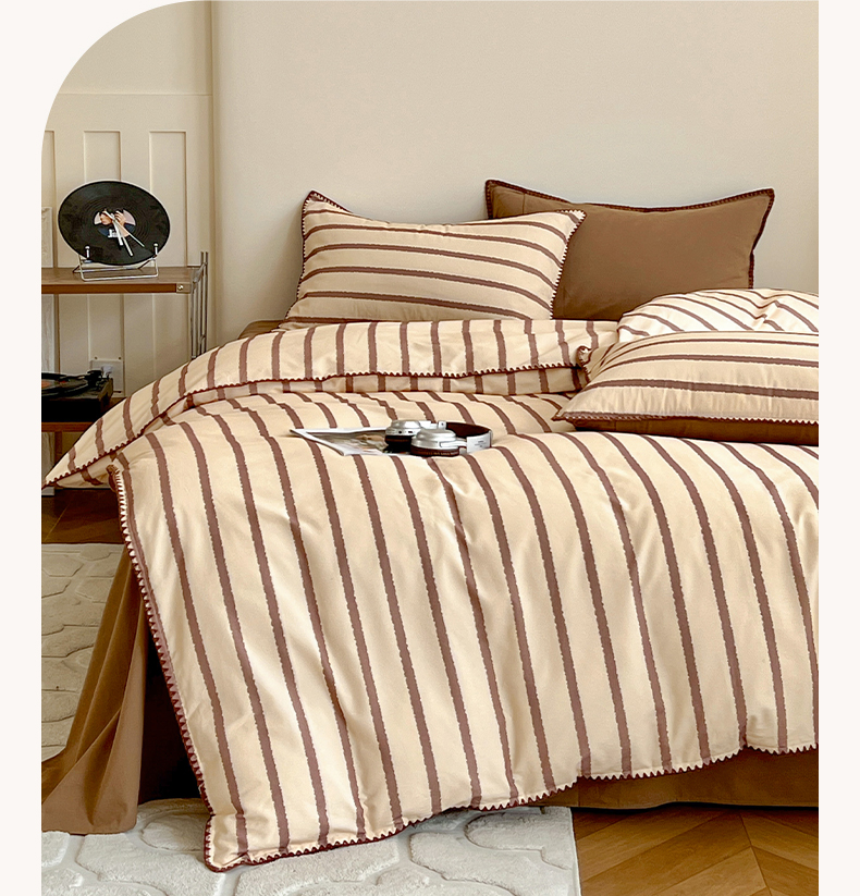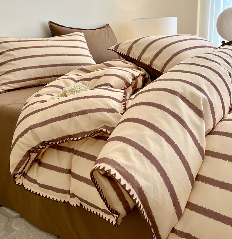 品乐家纺 2025秋冬全棉加厚磨毛贝壳边四件套 知简-咖