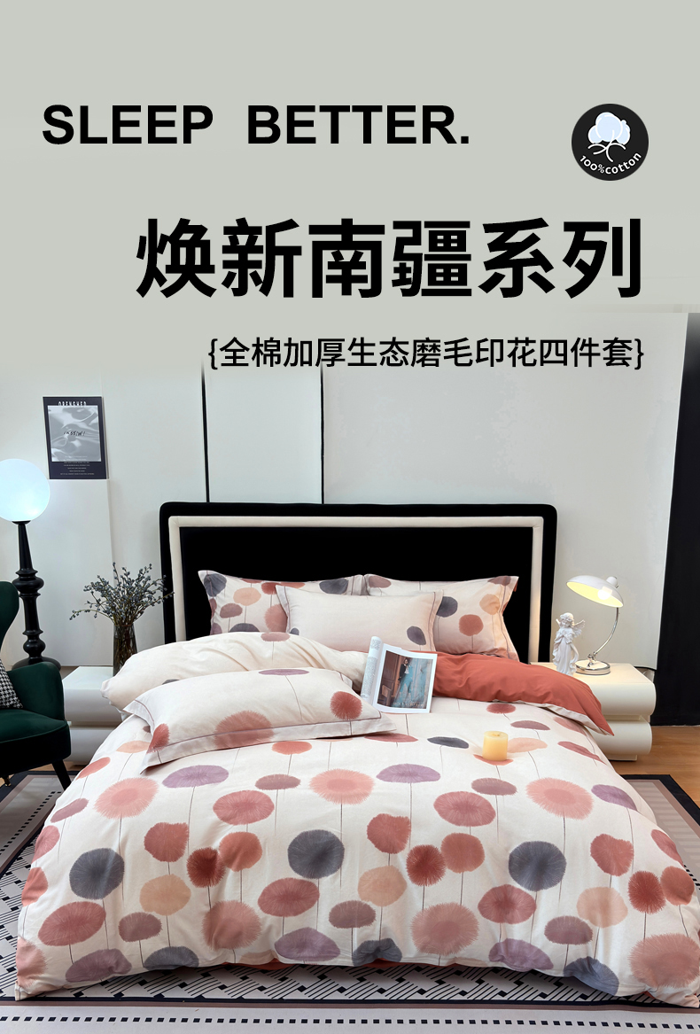 当前位置: 91家纺网 > 商品网购 > 床品套件 > 四件套 > 全棉普通四件套 > 未来家居 2025新款焕新南疆秋冬全棉加厚磨毛纯色印花四件套 蒸蒸日上-红