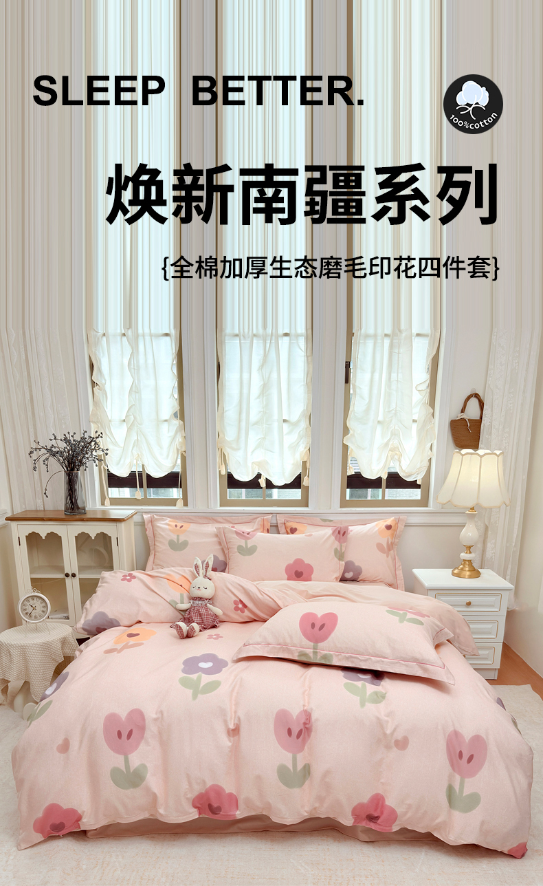 当前位置: 91家纺网 > 商品网购 > 床品套件 > 四件套 > 全棉普通四件套 > 未来家居 2025新款焕新南疆秋冬全棉加厚磨毛纯色印花四件套 乐滢