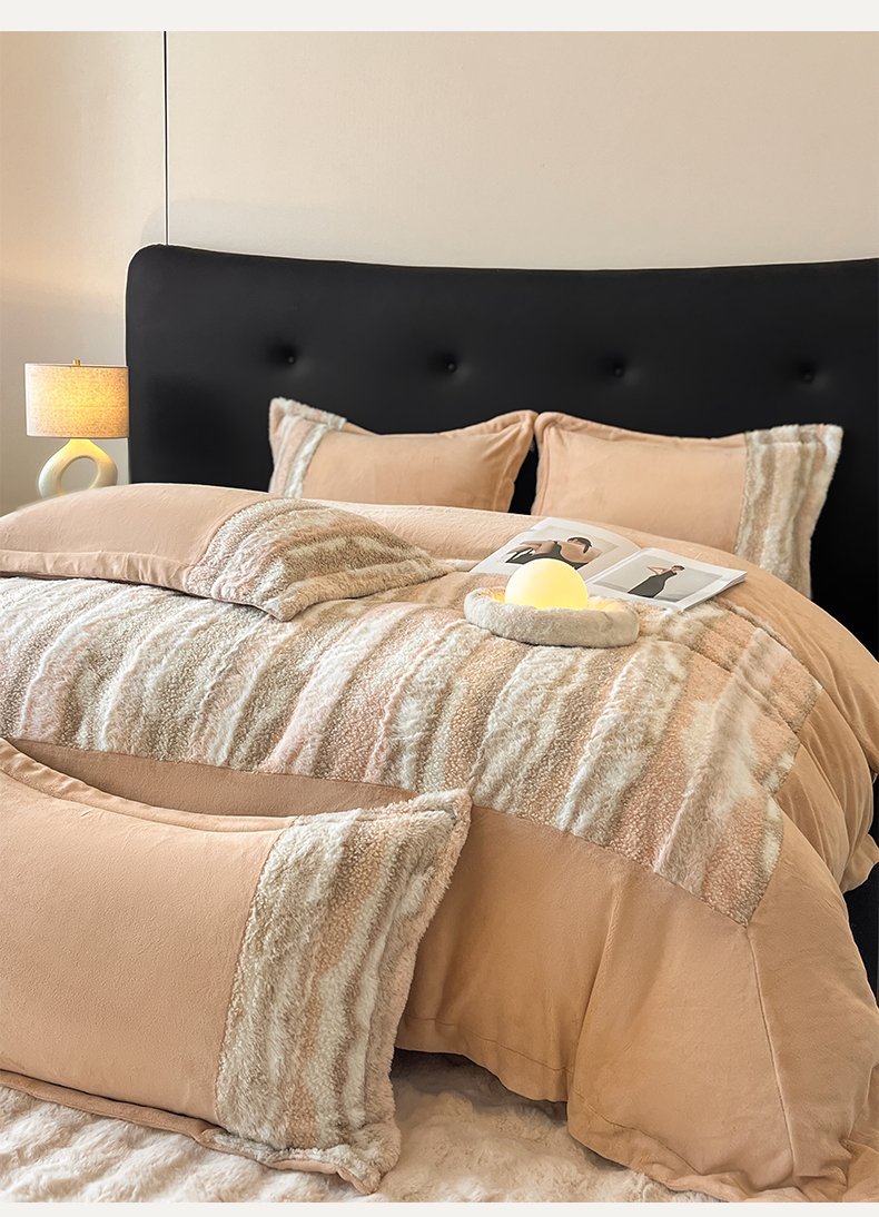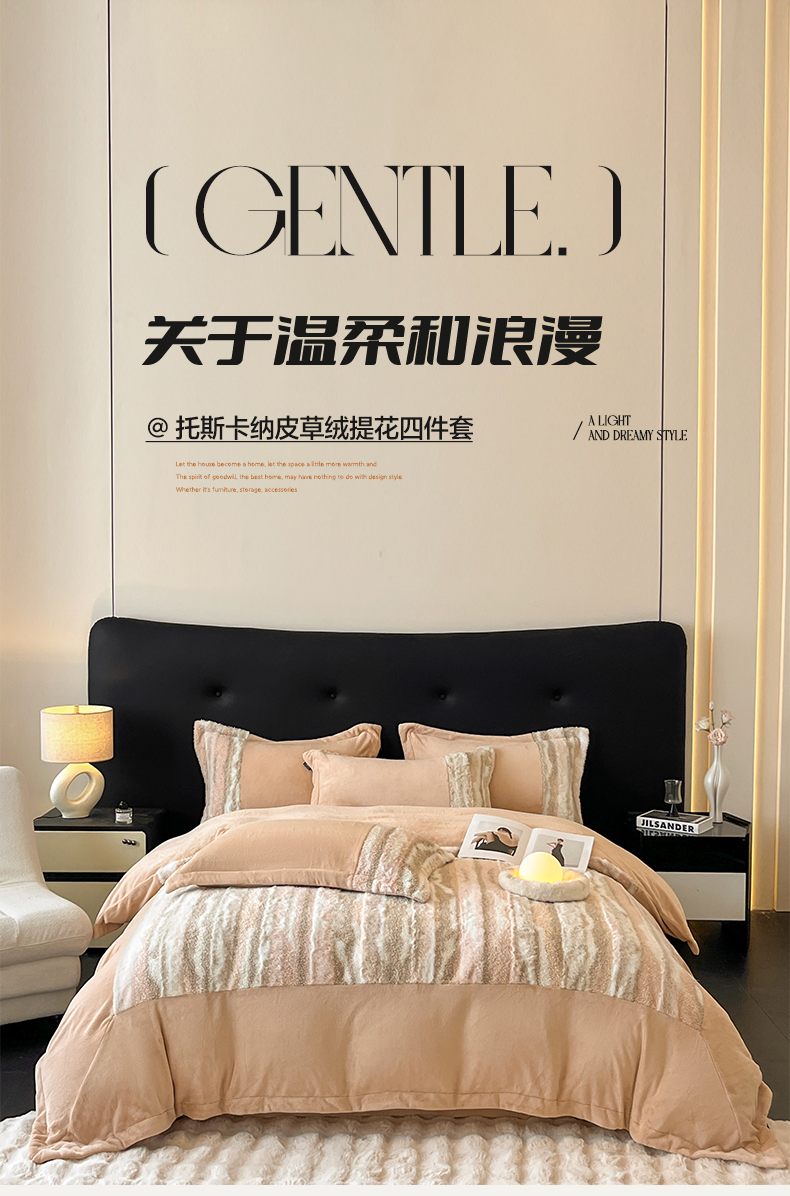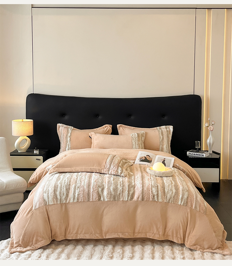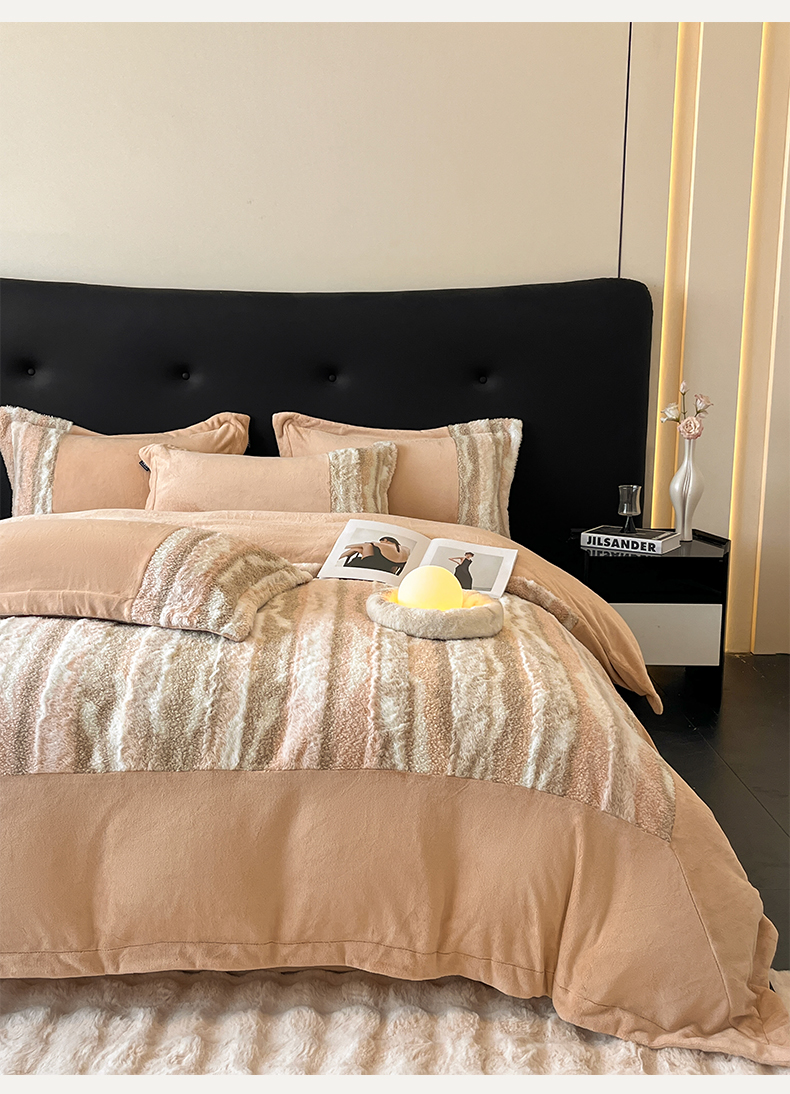 (总)羽梦家纺 2025新款260克加厚全消光皮草款阳光绒轻奢四件套,托斯卡纳-暗灰,托斯卡纳-暗粉,托斯卡纳-米黄