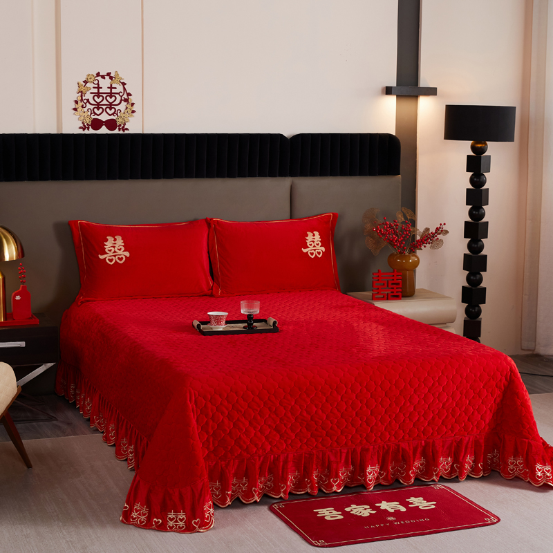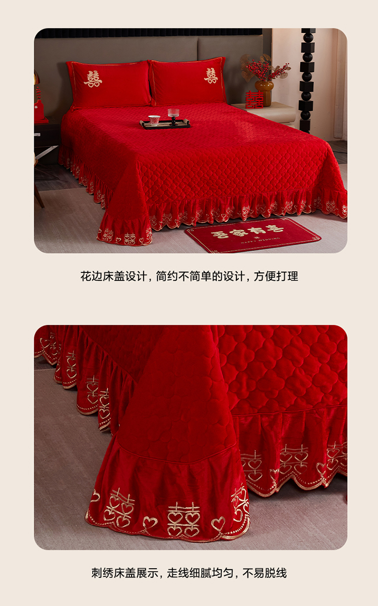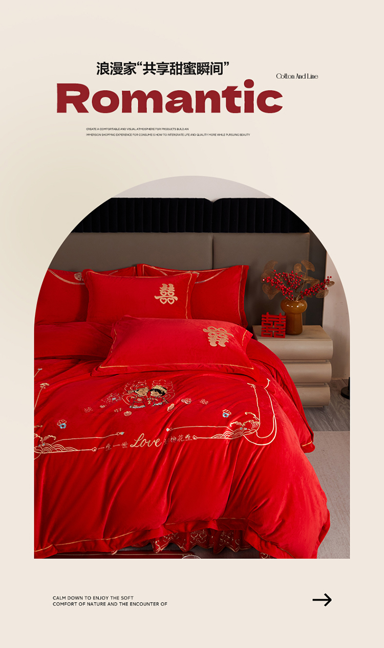 商品名称:青竹苑 2025新款婴儿绒刺绣婚庆四件套 好事发生