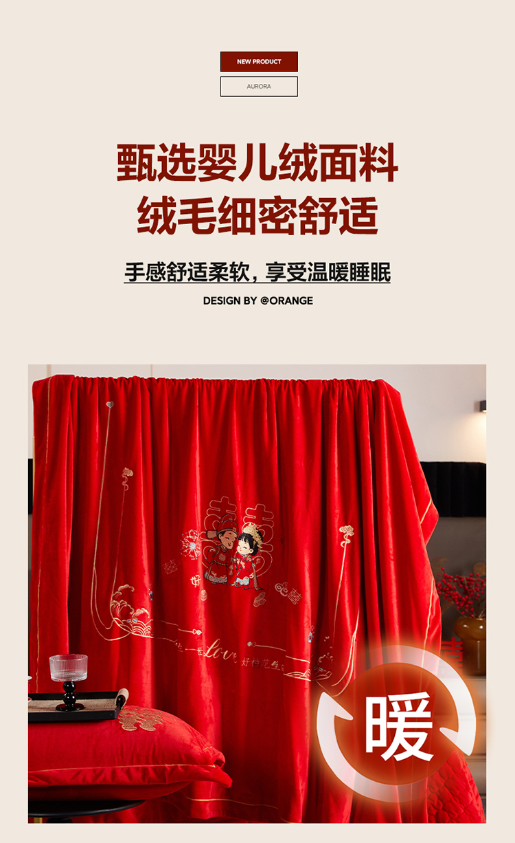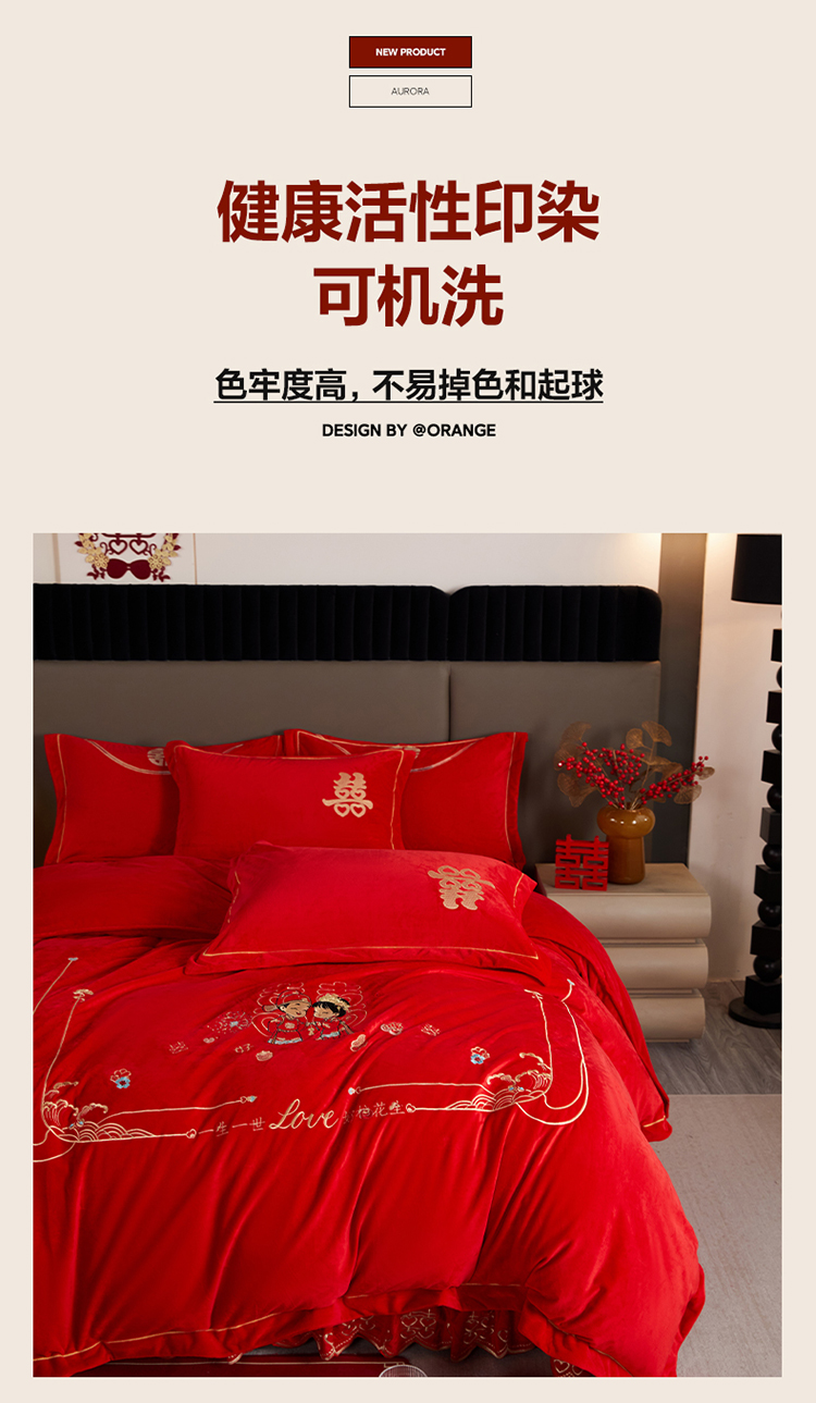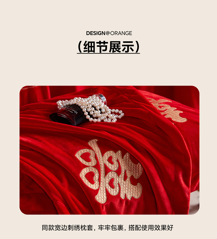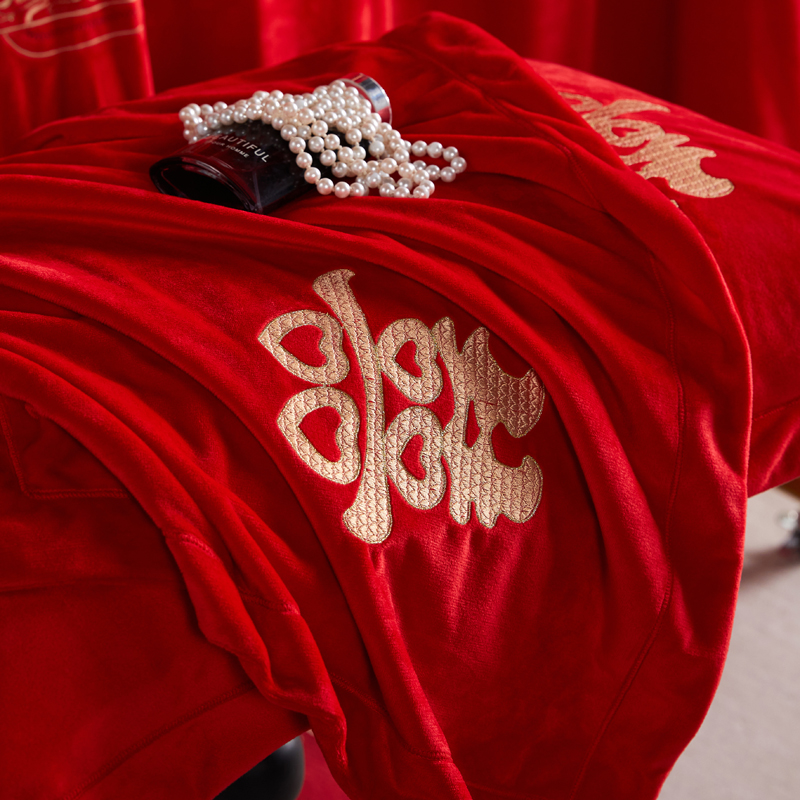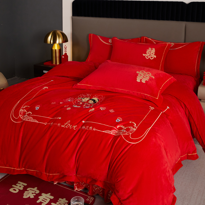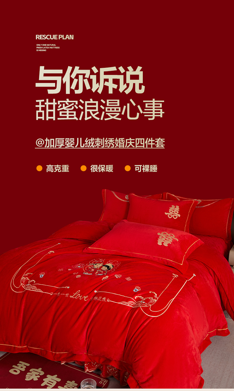 青竹苑 2025新款婴儿绒刺绣婚庆四件套 好事发生