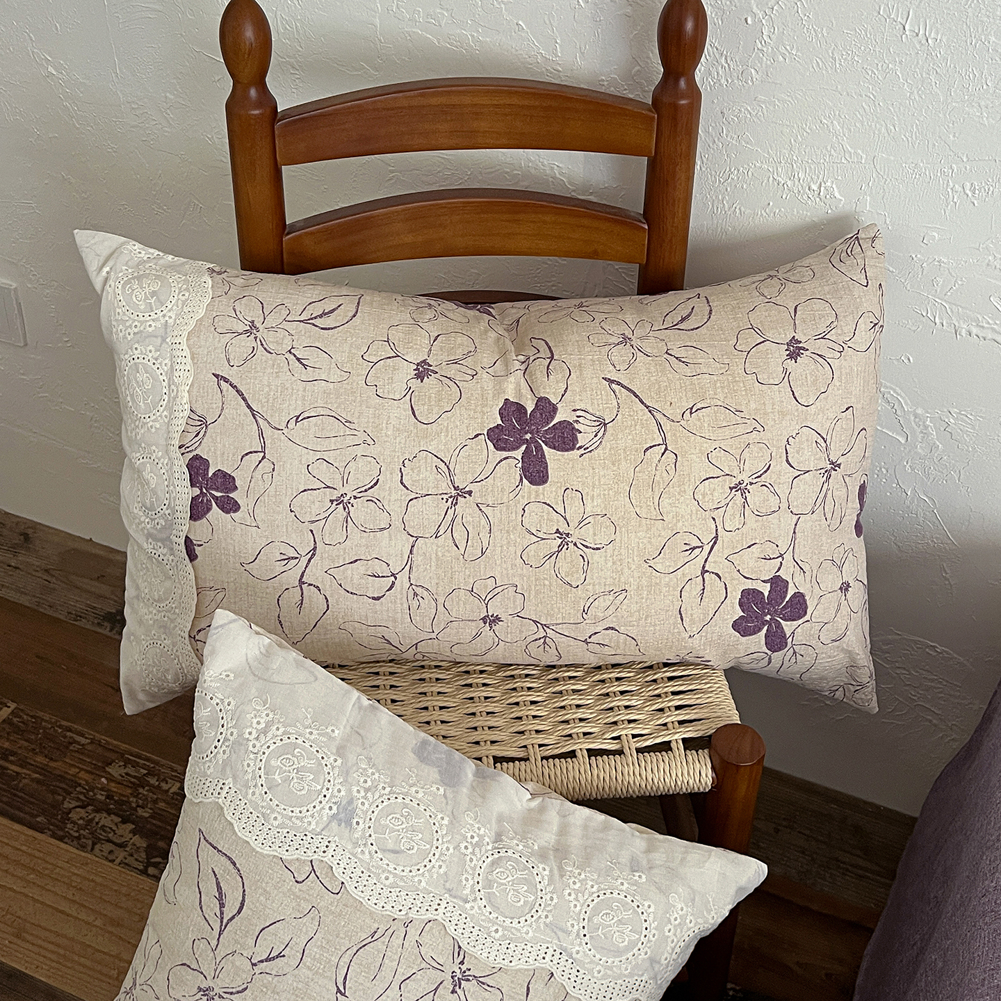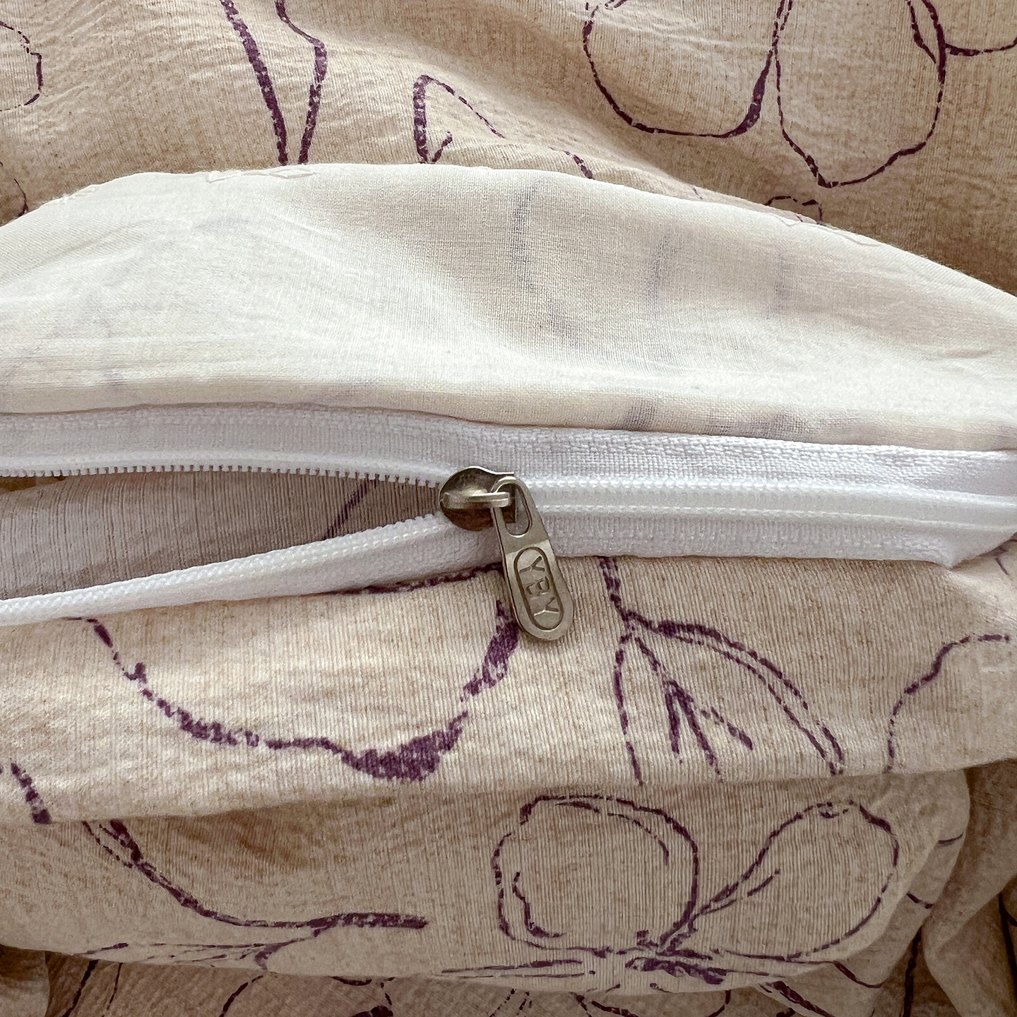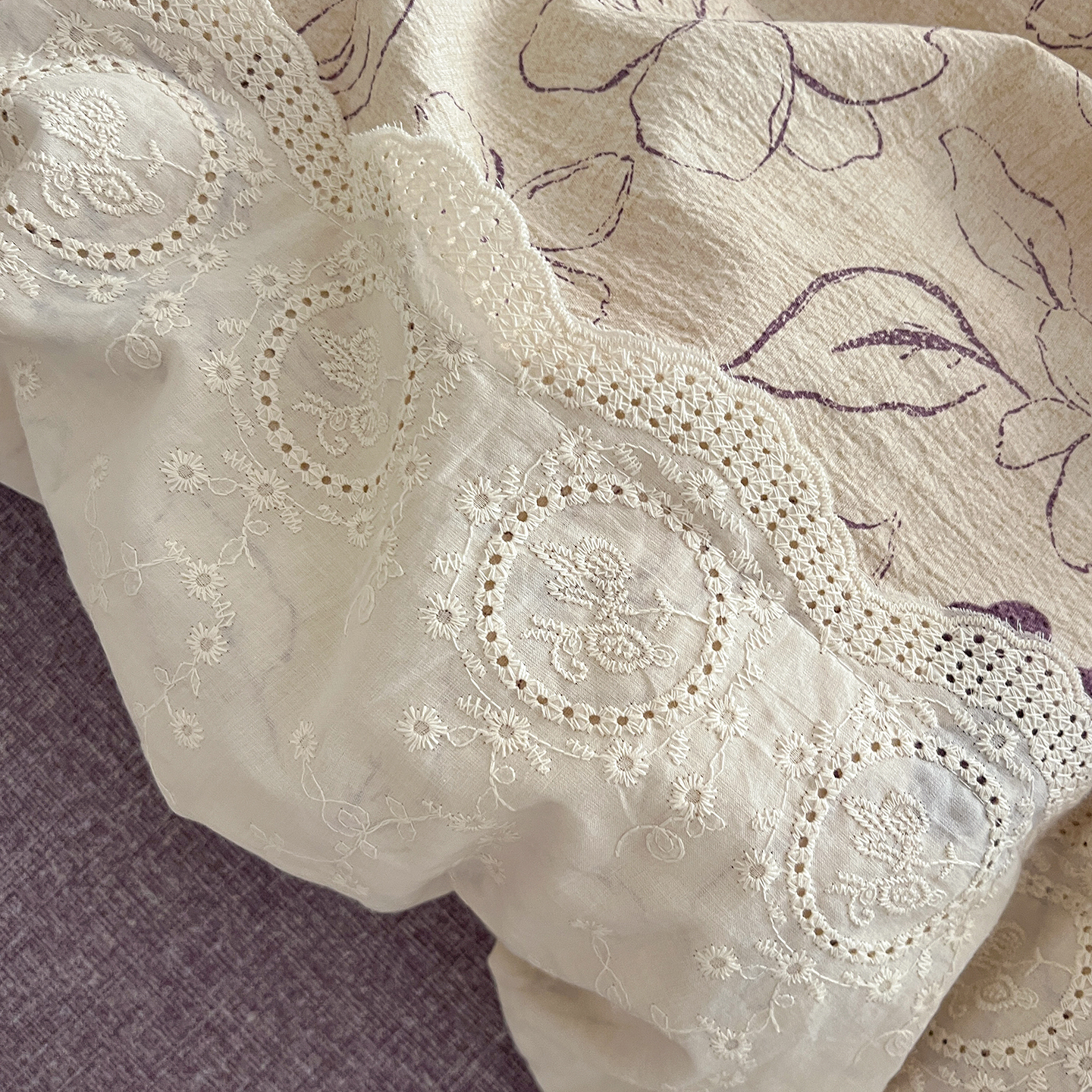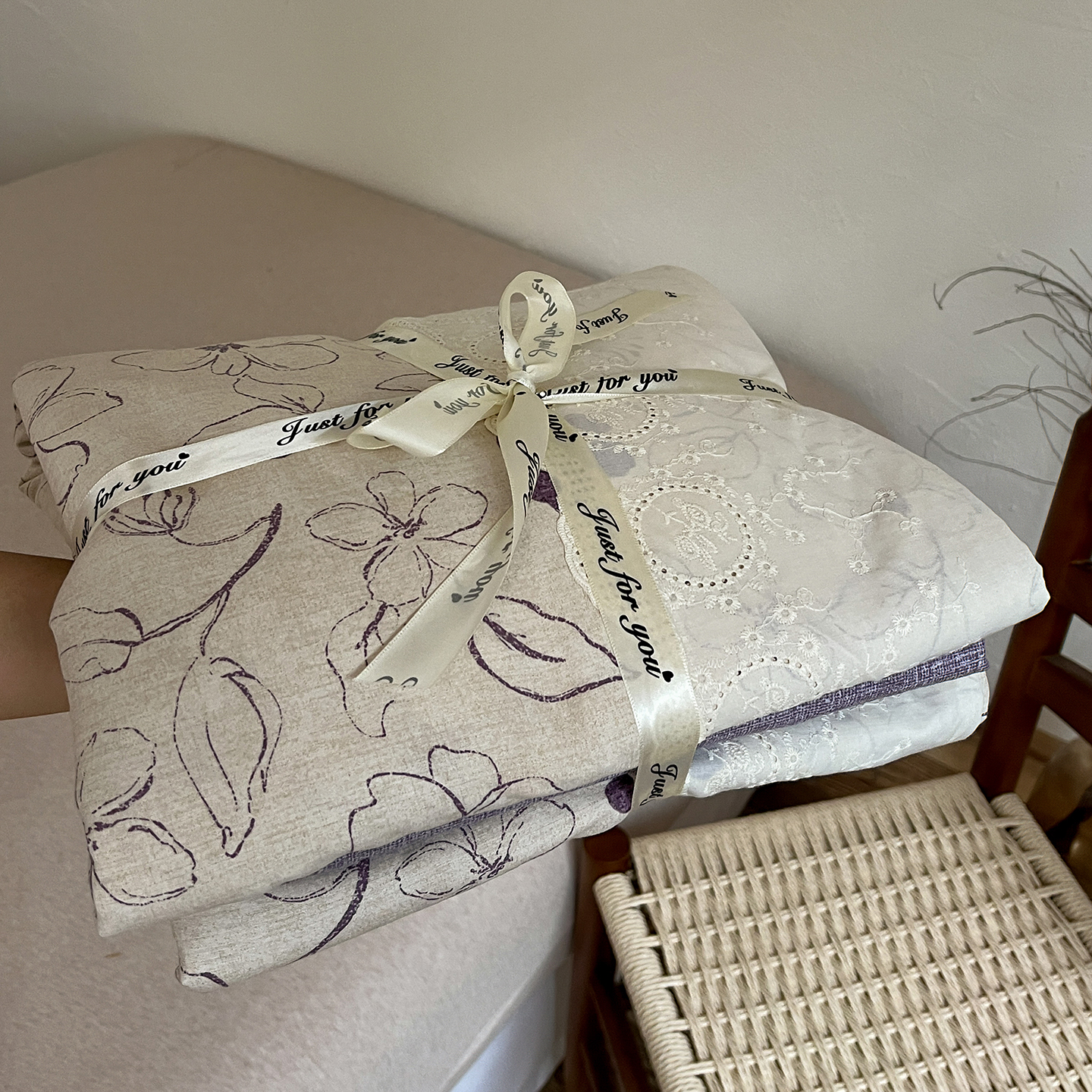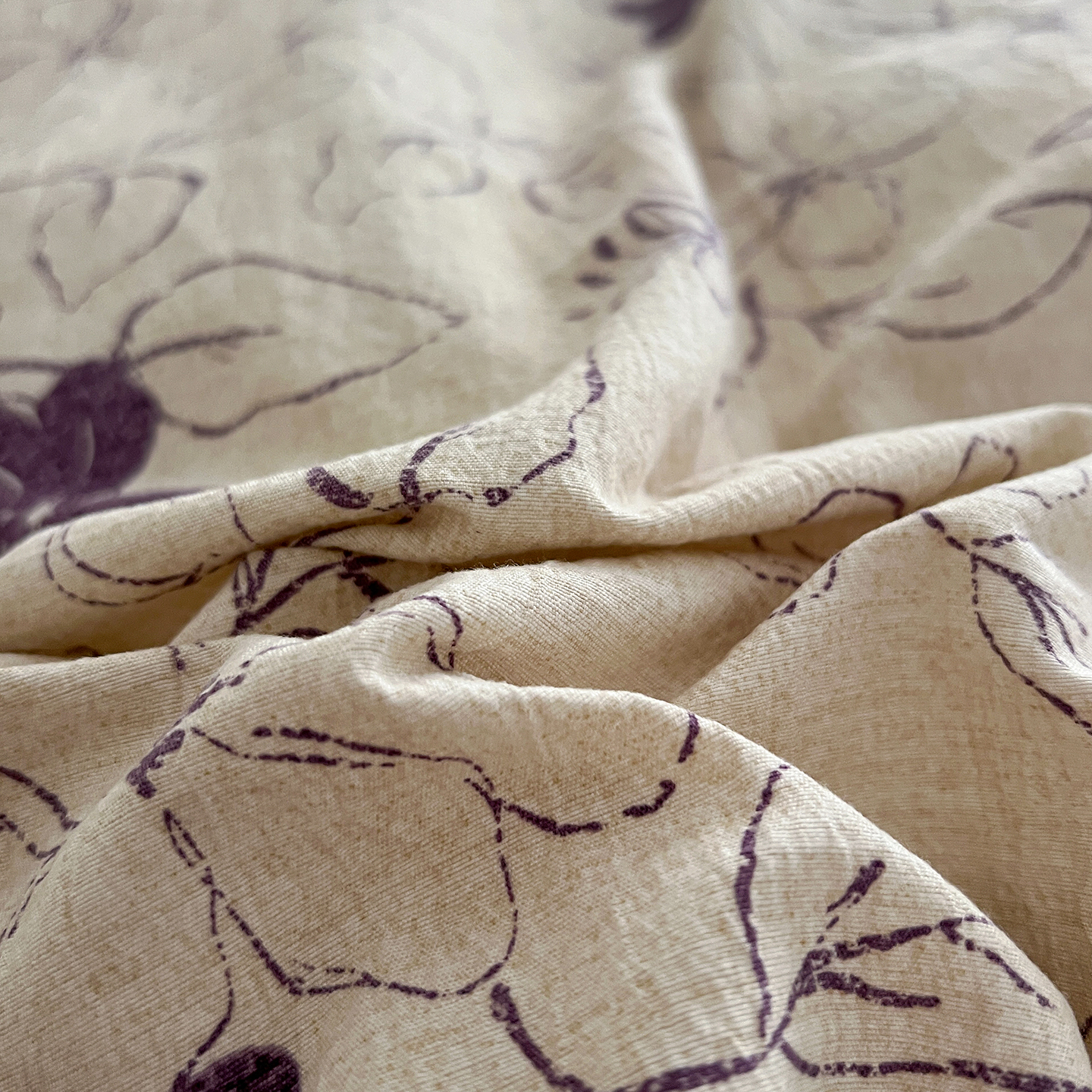 商品名称:一比一家纺 2026秋冬新品高克重原麻复古全棉花边棉麻侘寂风原麻四件套 (控价99元)约定紫