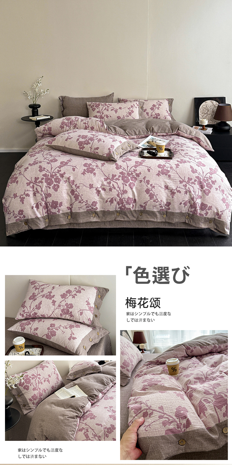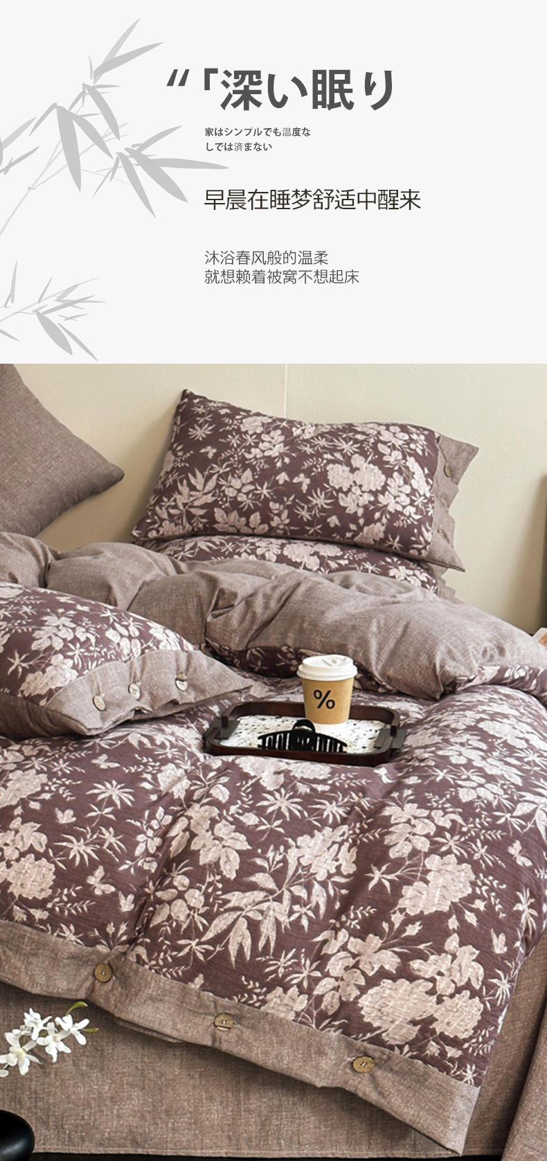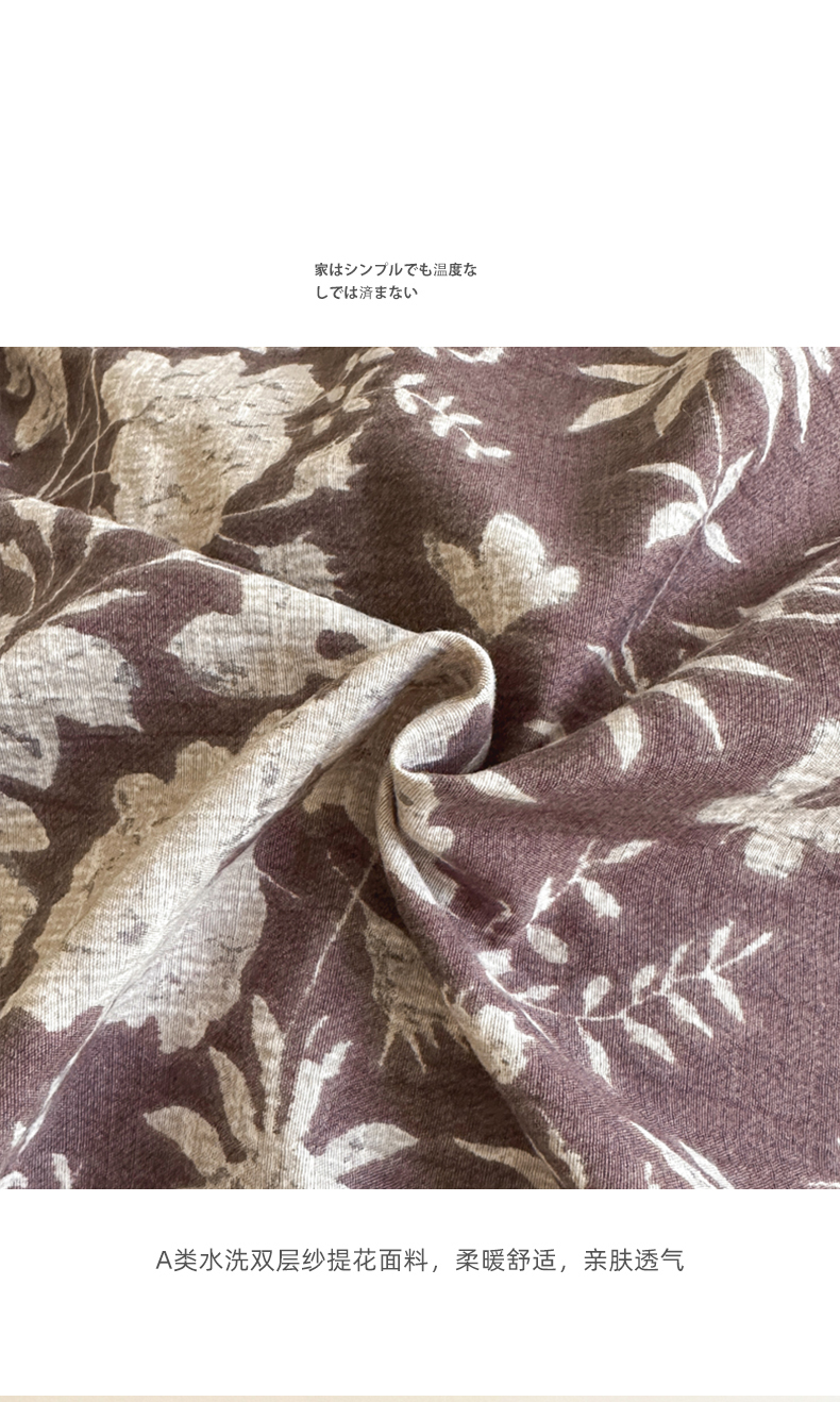 商品名称:七里香 2025秋冬新款A类加厚高克重亚麻复古风双层纱印花四件套 夕颜