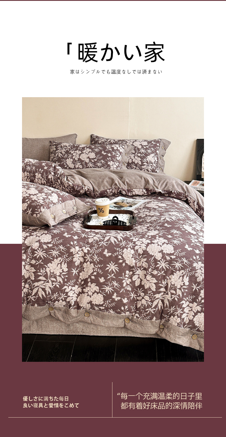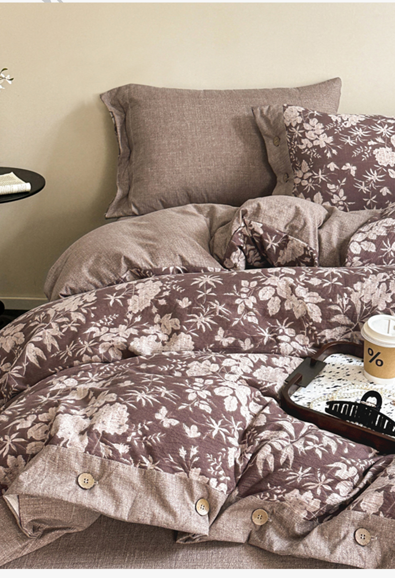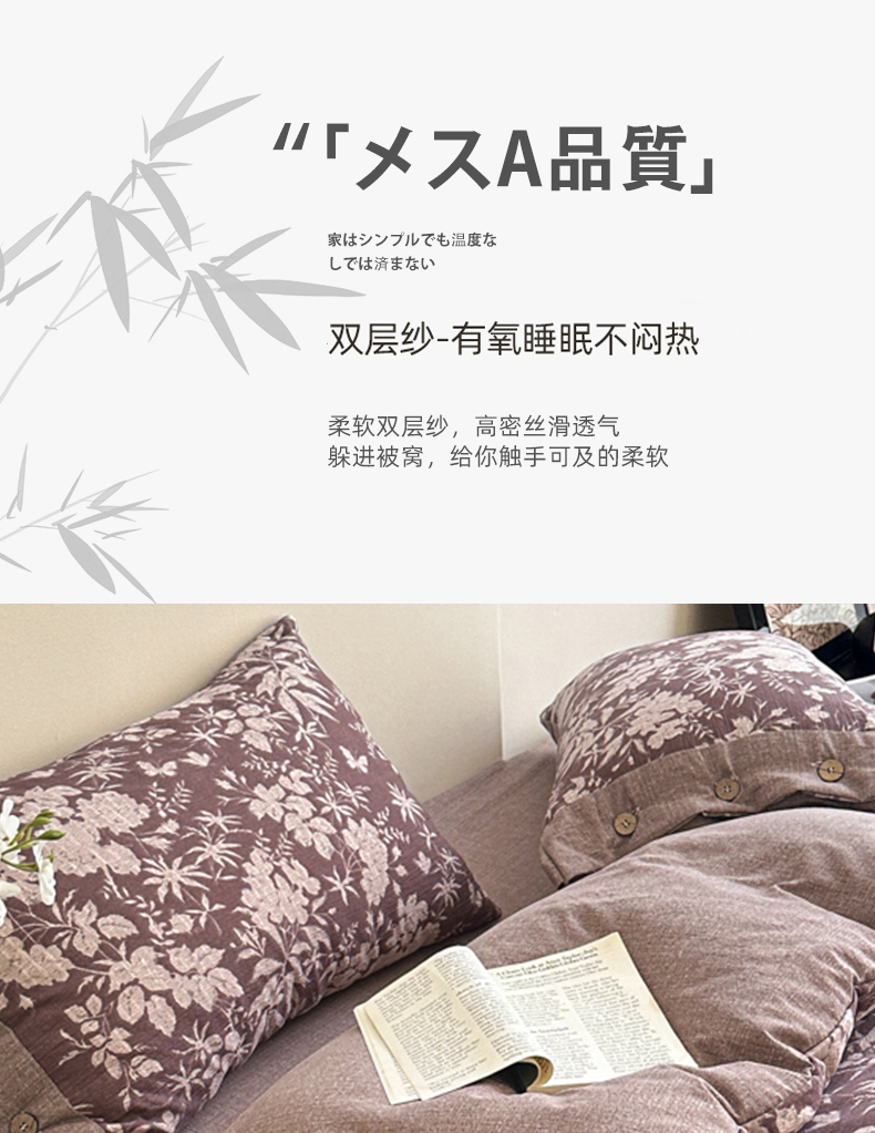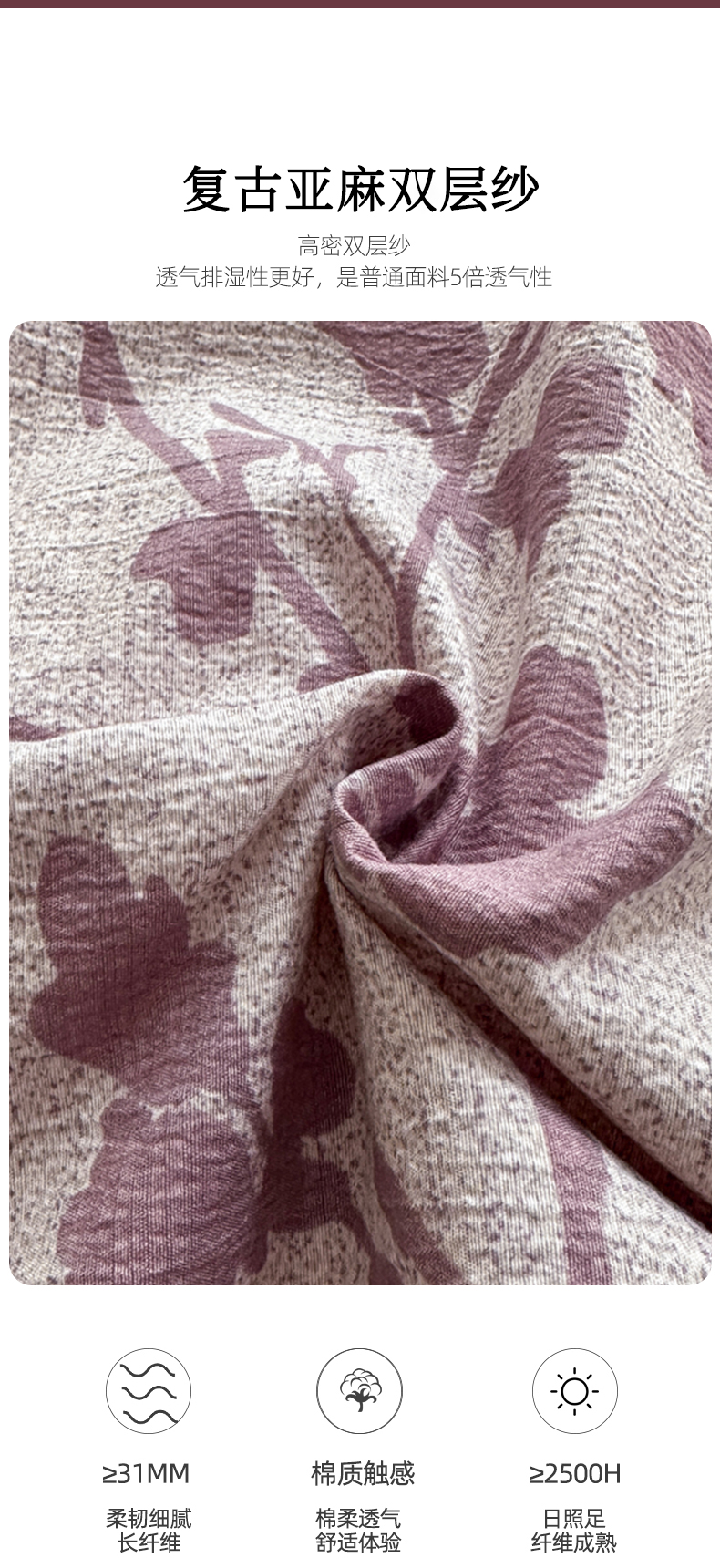 七里香 2025秋冬新款A类加厚高克重亚麻复古风双层纱印花四件套 夕颜