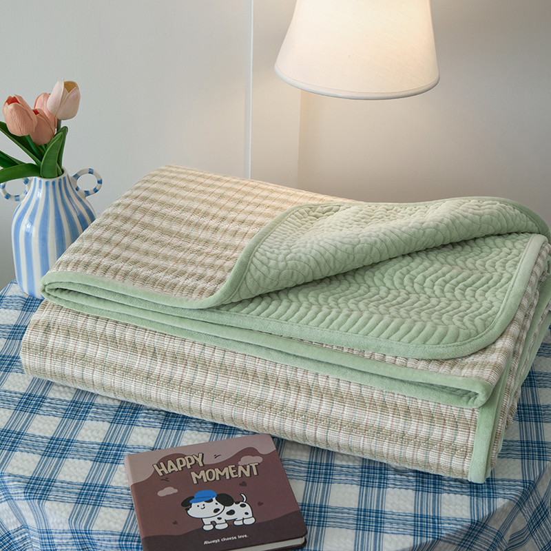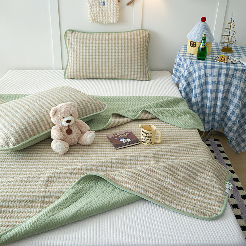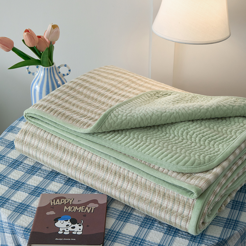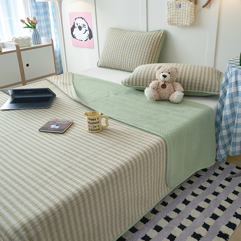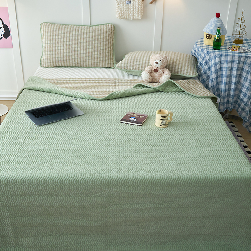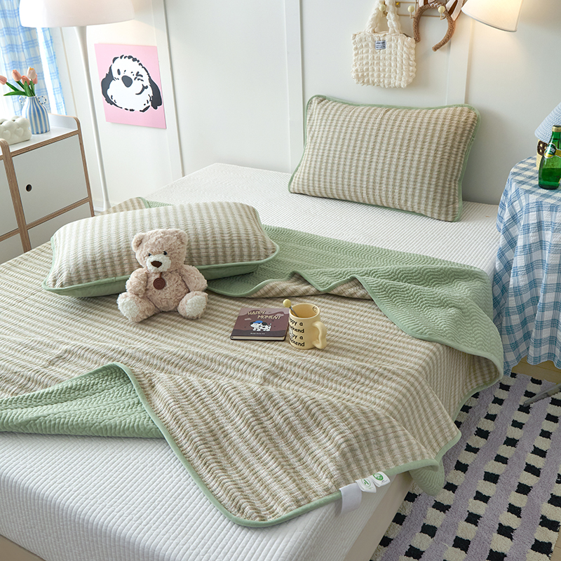 • 91家纺网 家纺一手货源 找家纺 沐纯家居 2025新款色织水洗棉棉绒(大豆纤维填充)床盖三件套 柠檬-绿