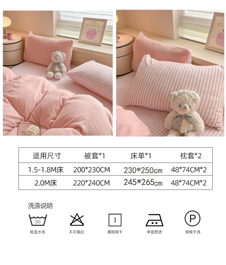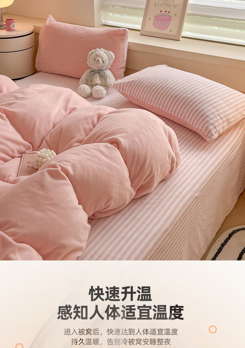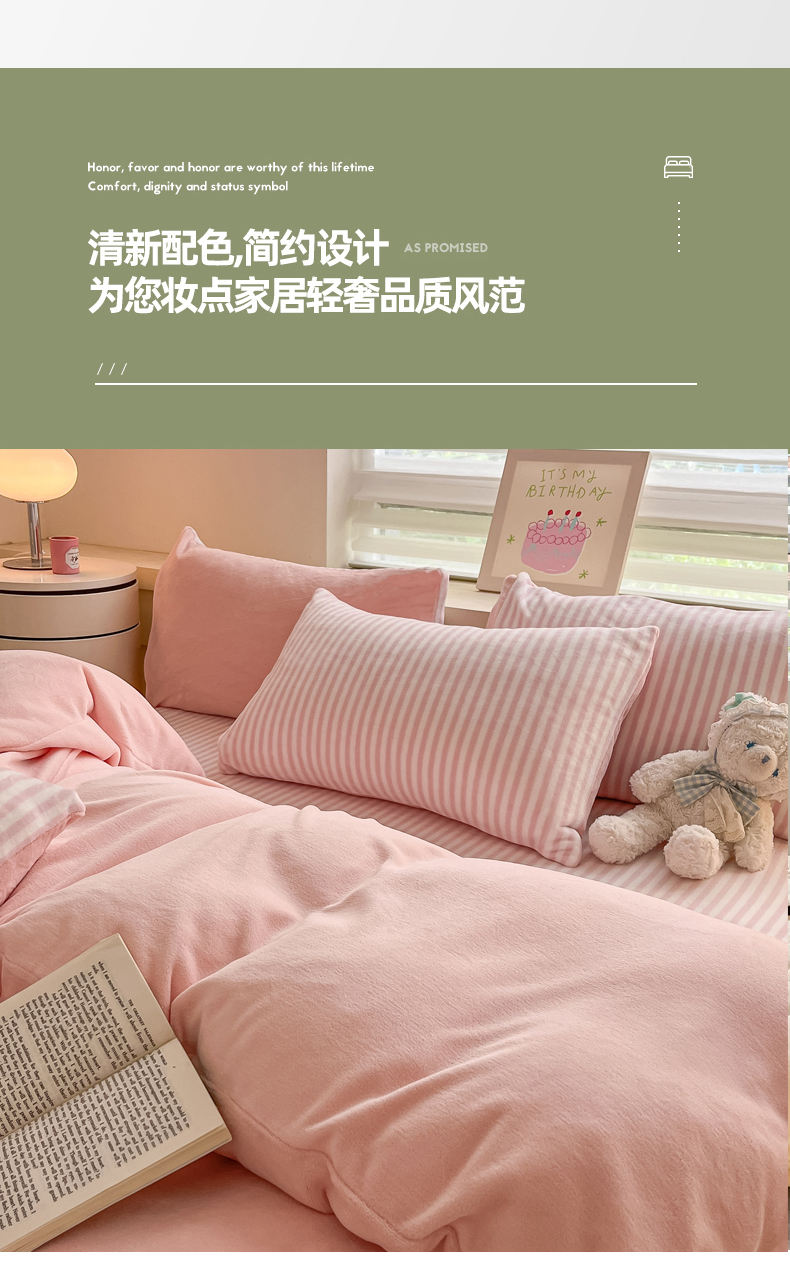 当前位置: 91家纺网 > 商品网购 > 床品套件 > 四件套 > 法莱绒四件套 > 三朵家纺 2025秋冬新款法莱绒混搭系列四件套 粉玉+细条