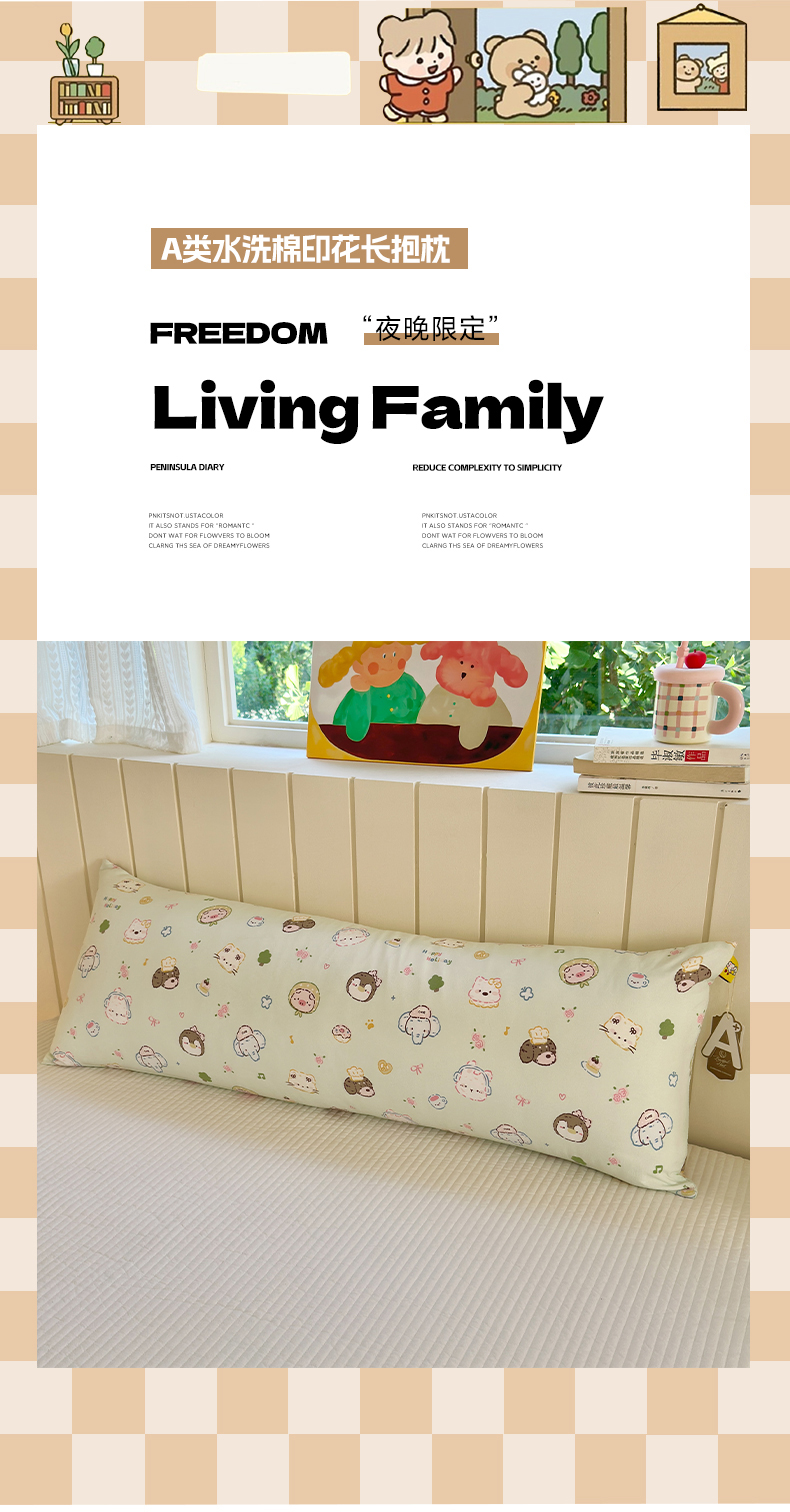 商品名称:罗亿家纺 2025新款ins韩国卡通水洗棉大抱枕长条靠枕靠垫(小红书同款) 小小萌宠