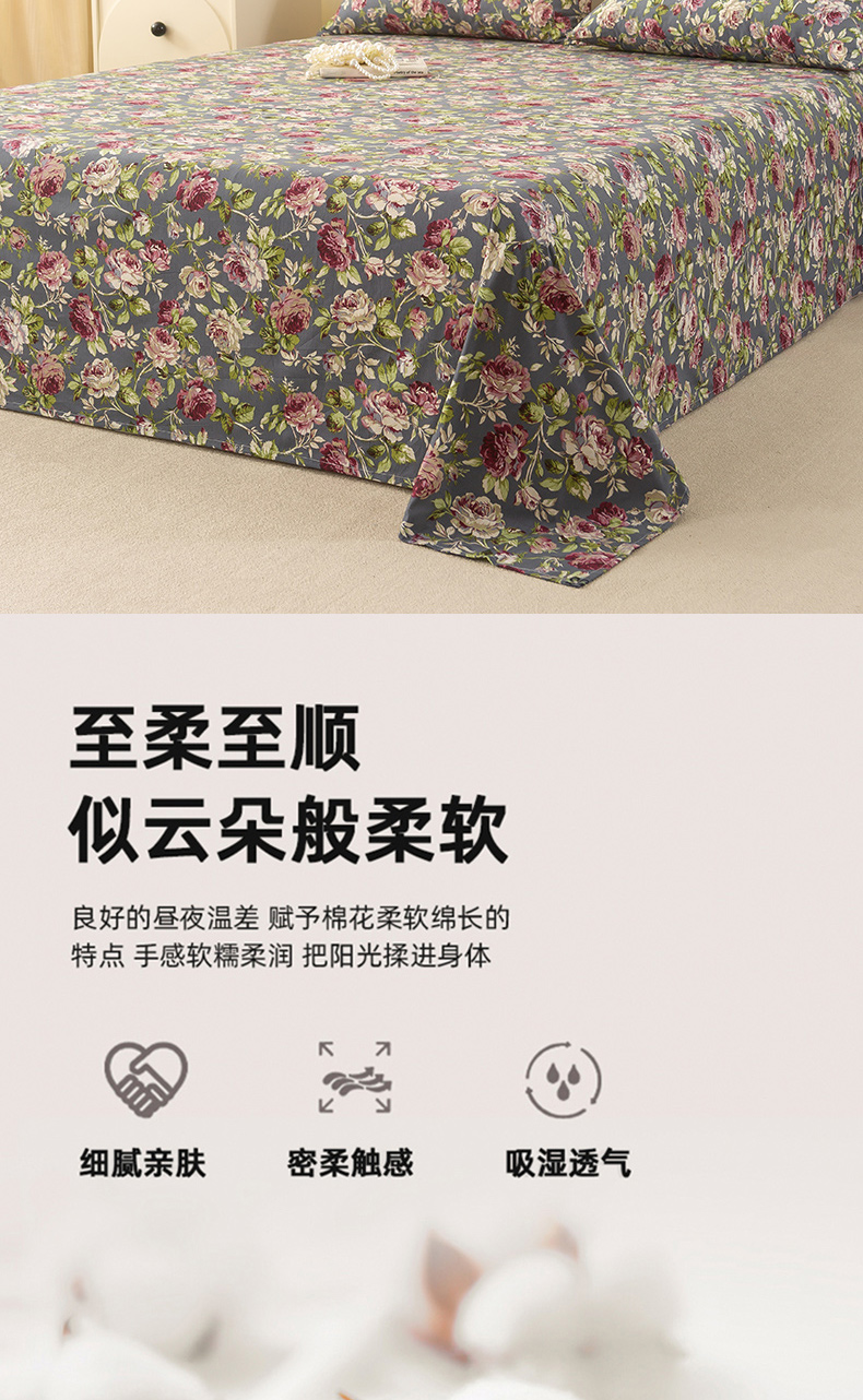 (总)锦鹭被业 2025新款复古全棉纯棉单床单单品床单床单单件,繁华似锦,花海,相约