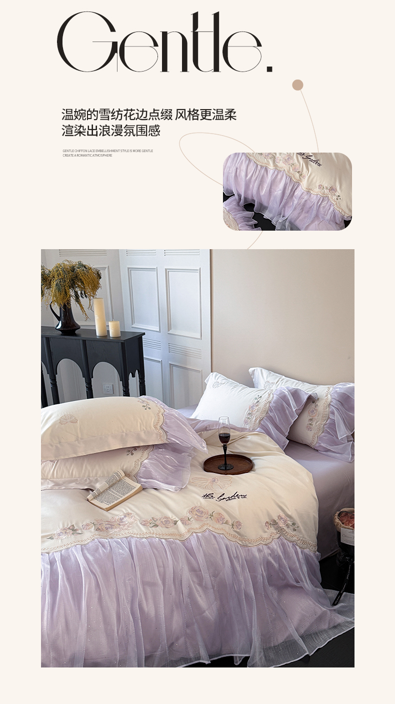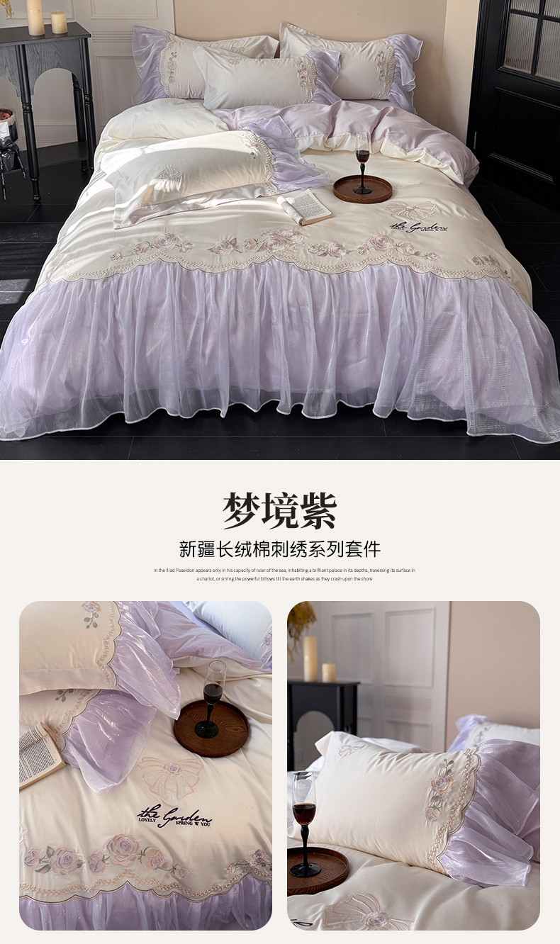 当前位置: 91家纺网 > 商品网购 > 床品套件 > 四件套 > 长绒棉四件套 > 优悦生活馆 2025新款新疆长绒棉纯棉花边刺绣四件套-花间悟语 花间悟语-海盐蓝