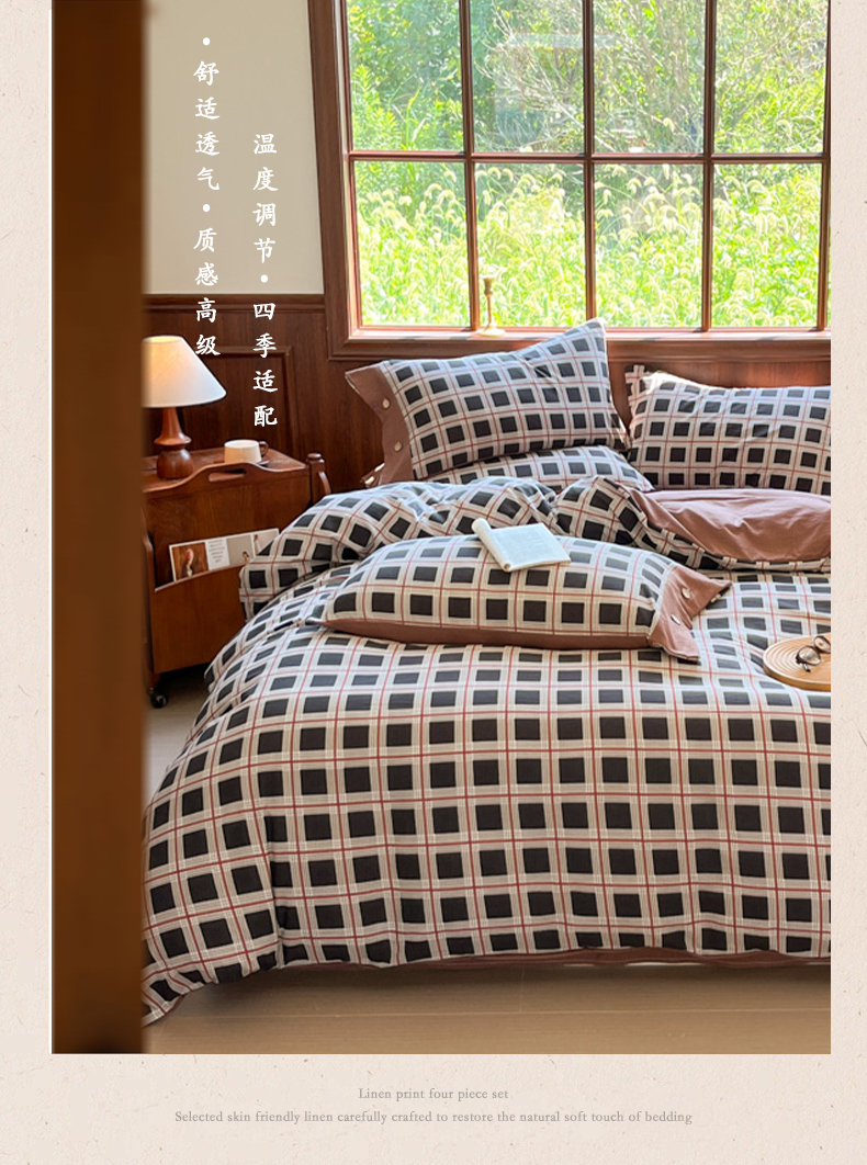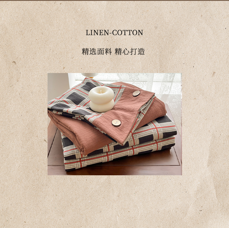 当前位置: 91家纺网 > 商品网购 > 床品套件 > 四件套 > 其它四件套 > 爱彼家纺 2025新款亲肤舒适原麻亚麻水洗棉四件套-纽扣款 素简格