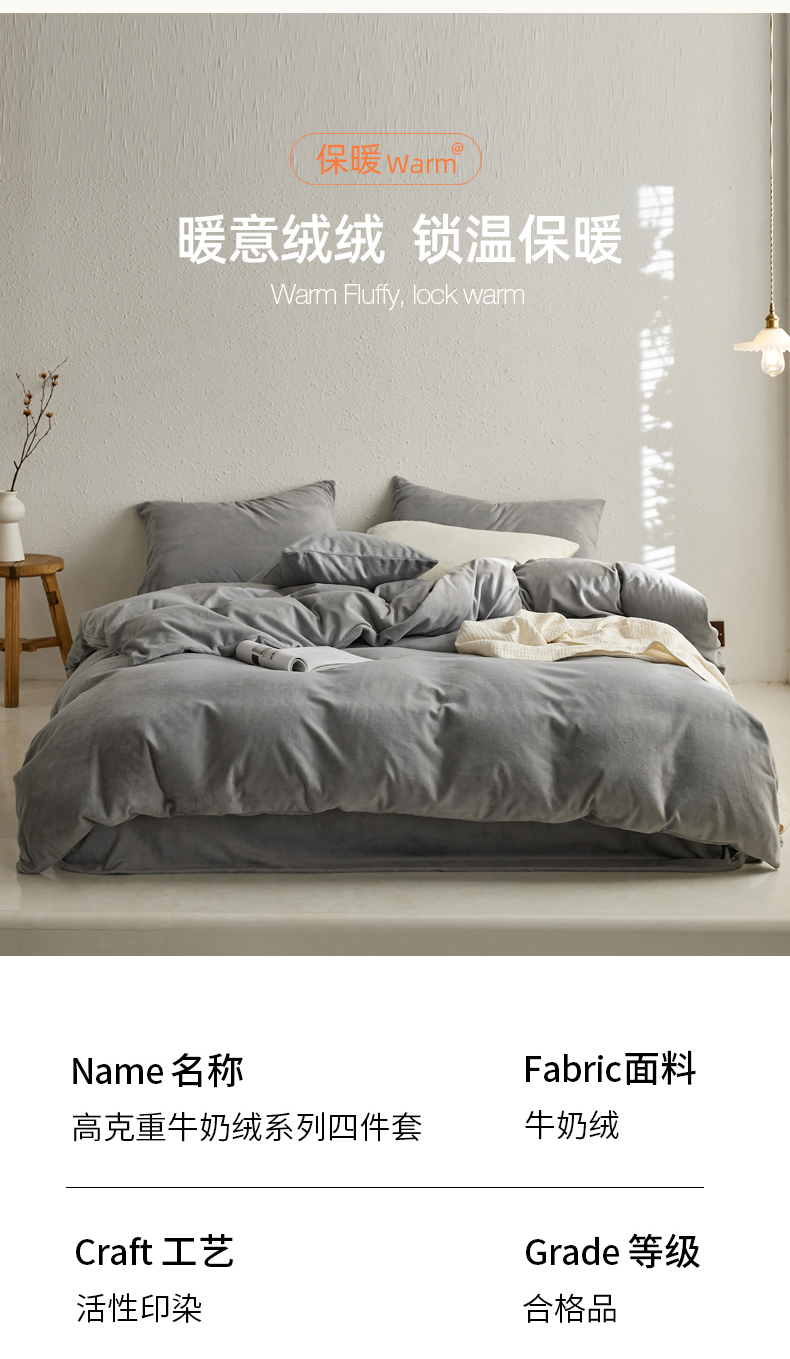 当前位置: 91家纺网 > 商品网购 > 床品套件 > 四件套 > 牛奶绒四件套 > 千朵森 2025新款高克重全消光纯色牛奶绒套件四件套 风格一 太空灰