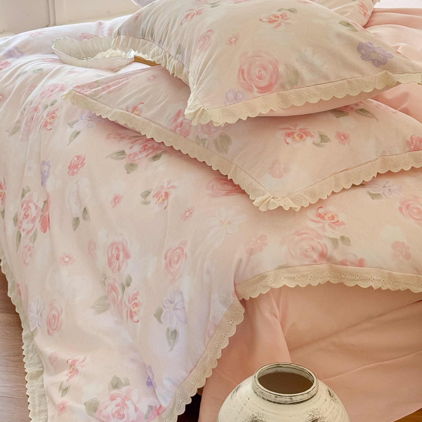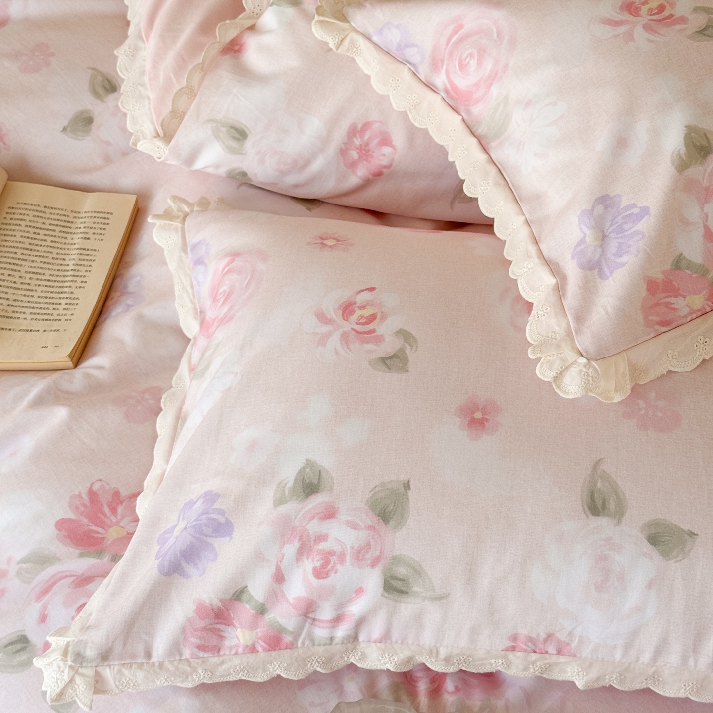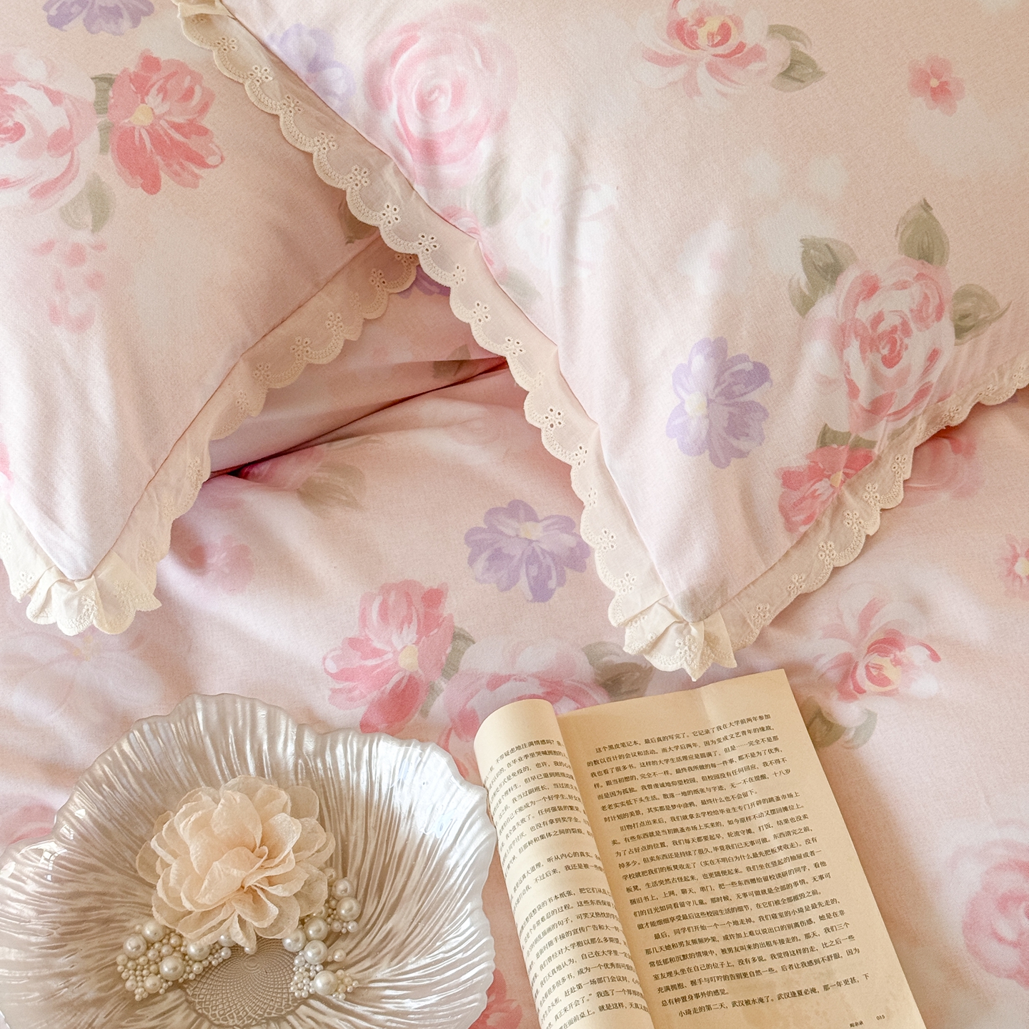 于果 2025新款全棉纯棉生态磨毛花边款四件套 梦瑶