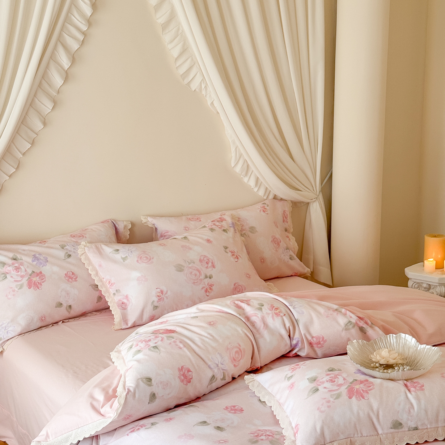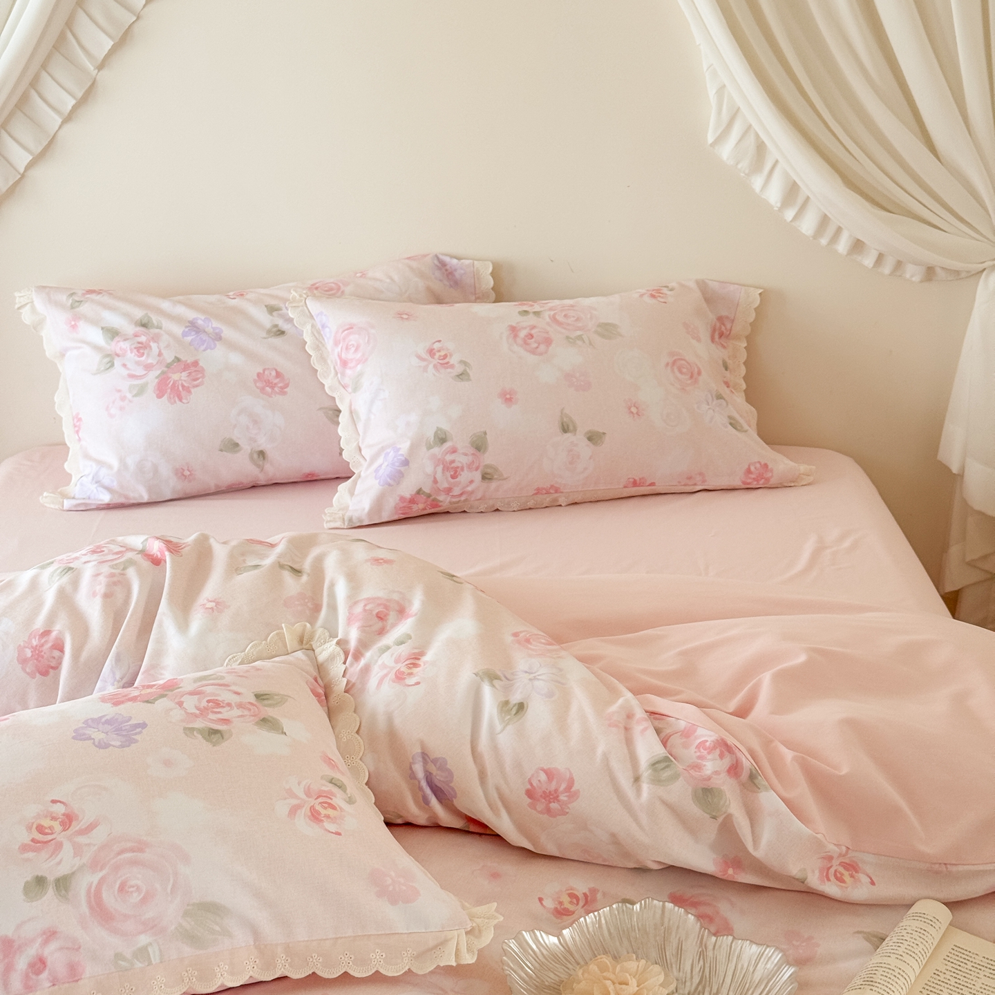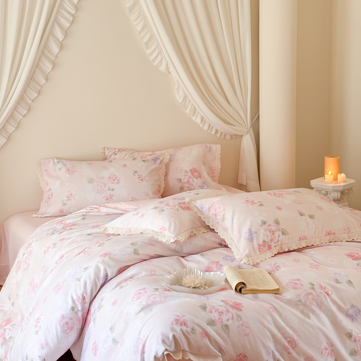 于果 2025新款全棉纯棉生态磨毛花边款四件套 梦瑶