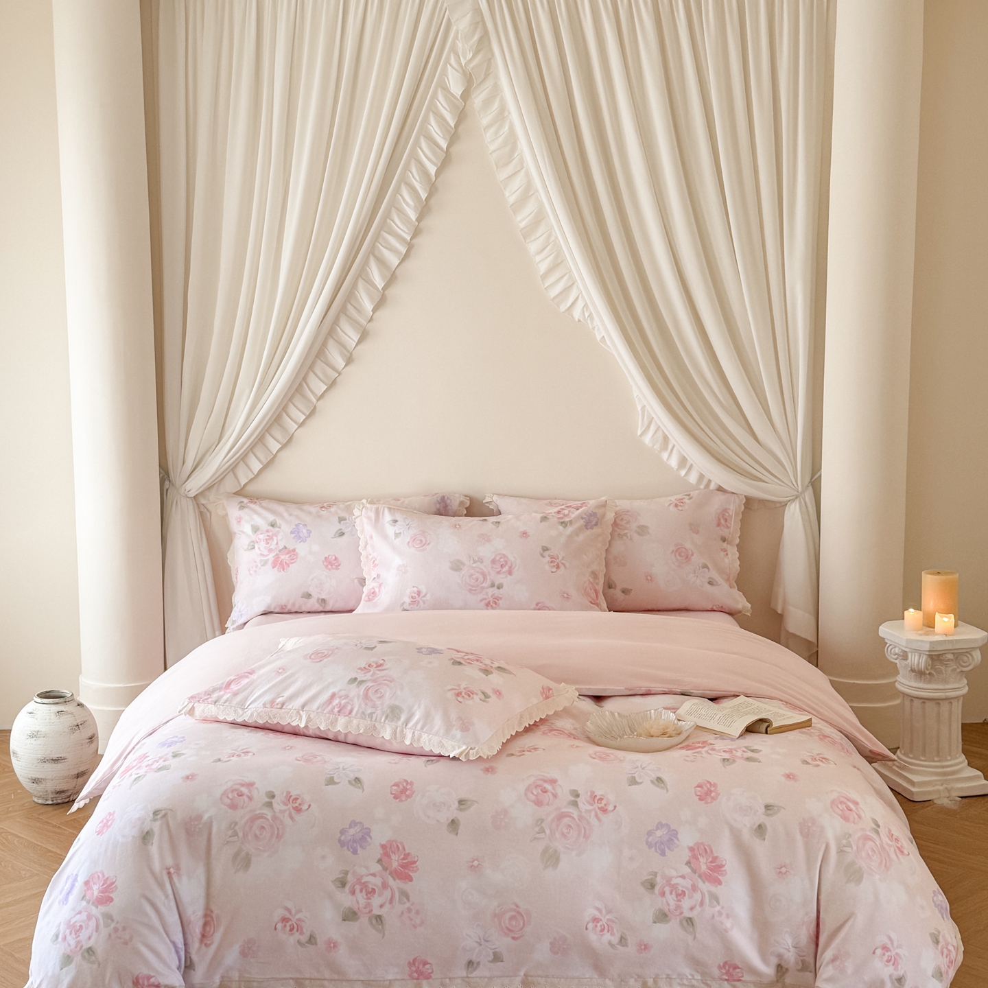 商品名称:于果 2025新款全棉纯棉生态磨毛花边款四件套 梦瑶