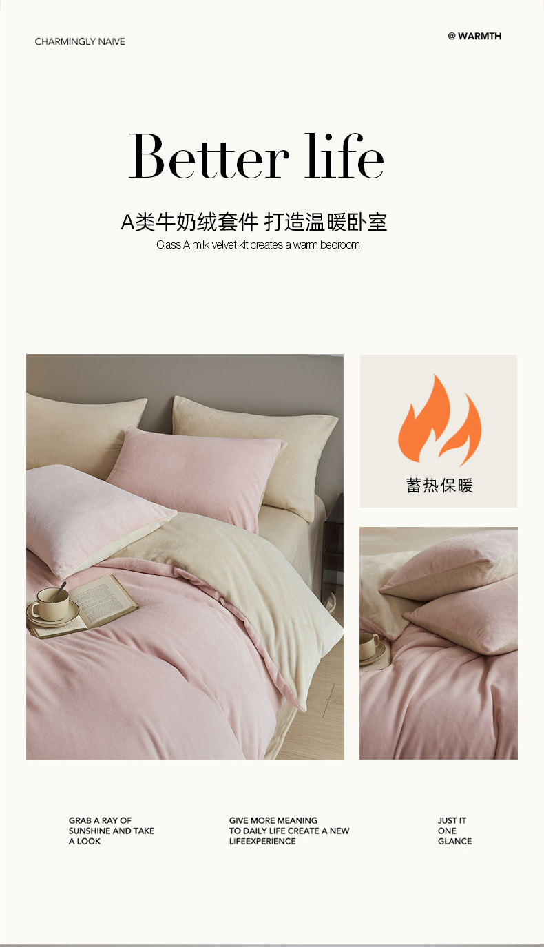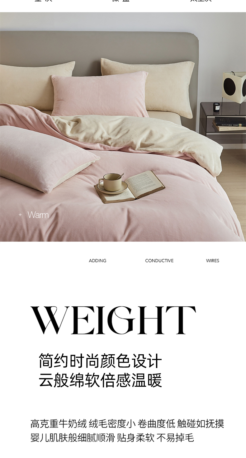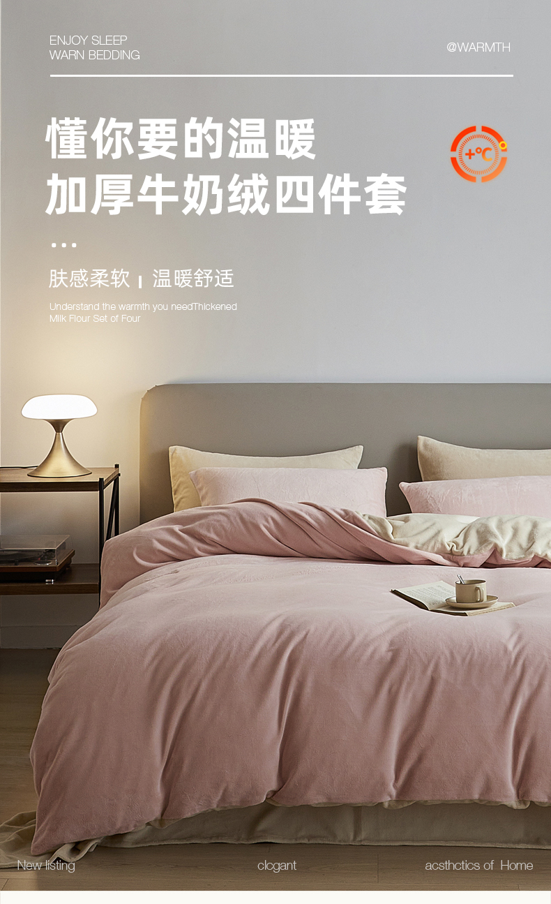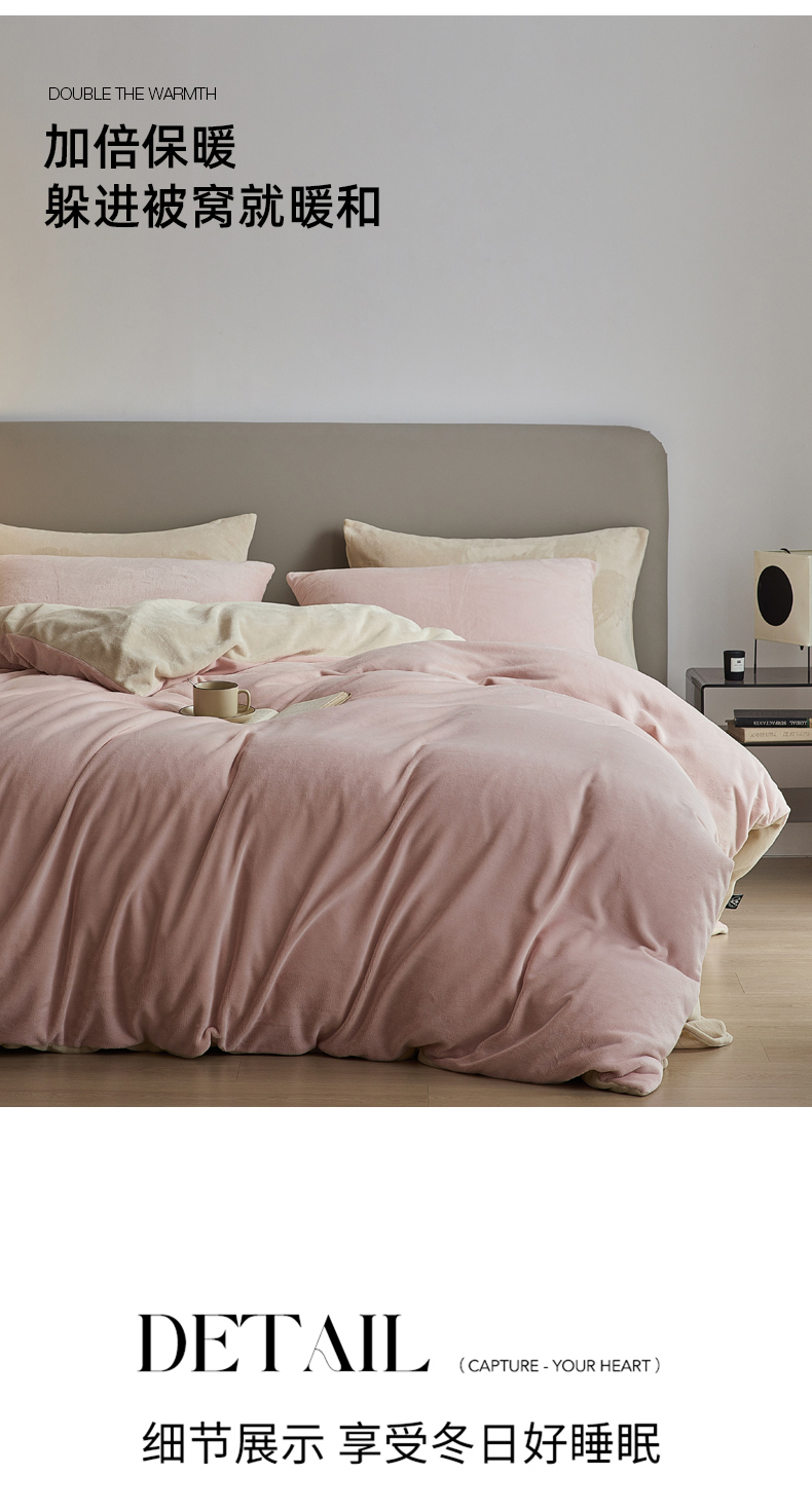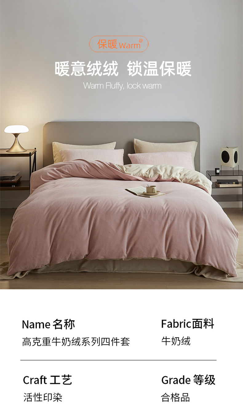 当前位置: 91家纺网 > 商品网购 > 床品套件 > 四件套 > 牛奶绒四件套 > 千朵森 2025新款高克重全消光纯色牛奶绒套件四件套 风格二 藕荷粉配郁香金