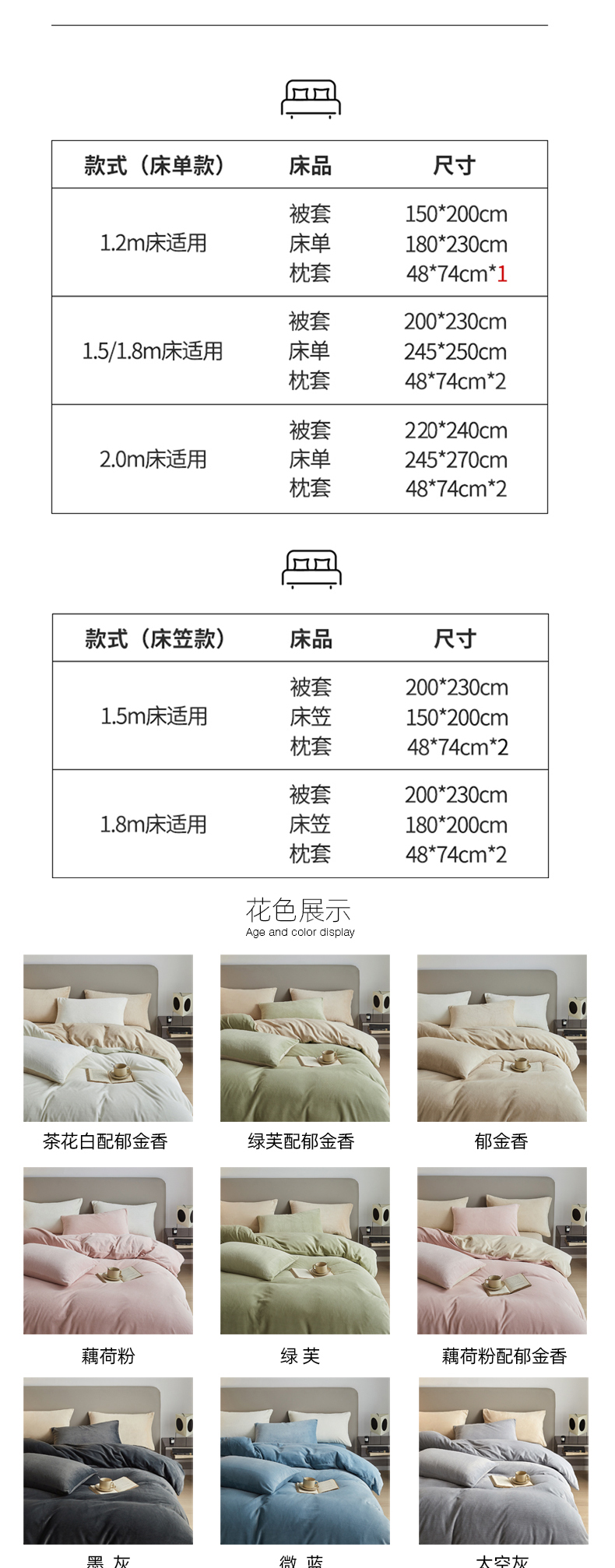 【床笠款】1.5四件套-被套200x230 | ¥160.00 |