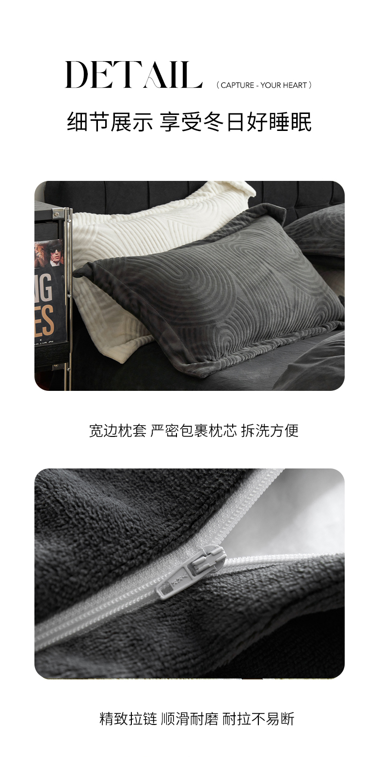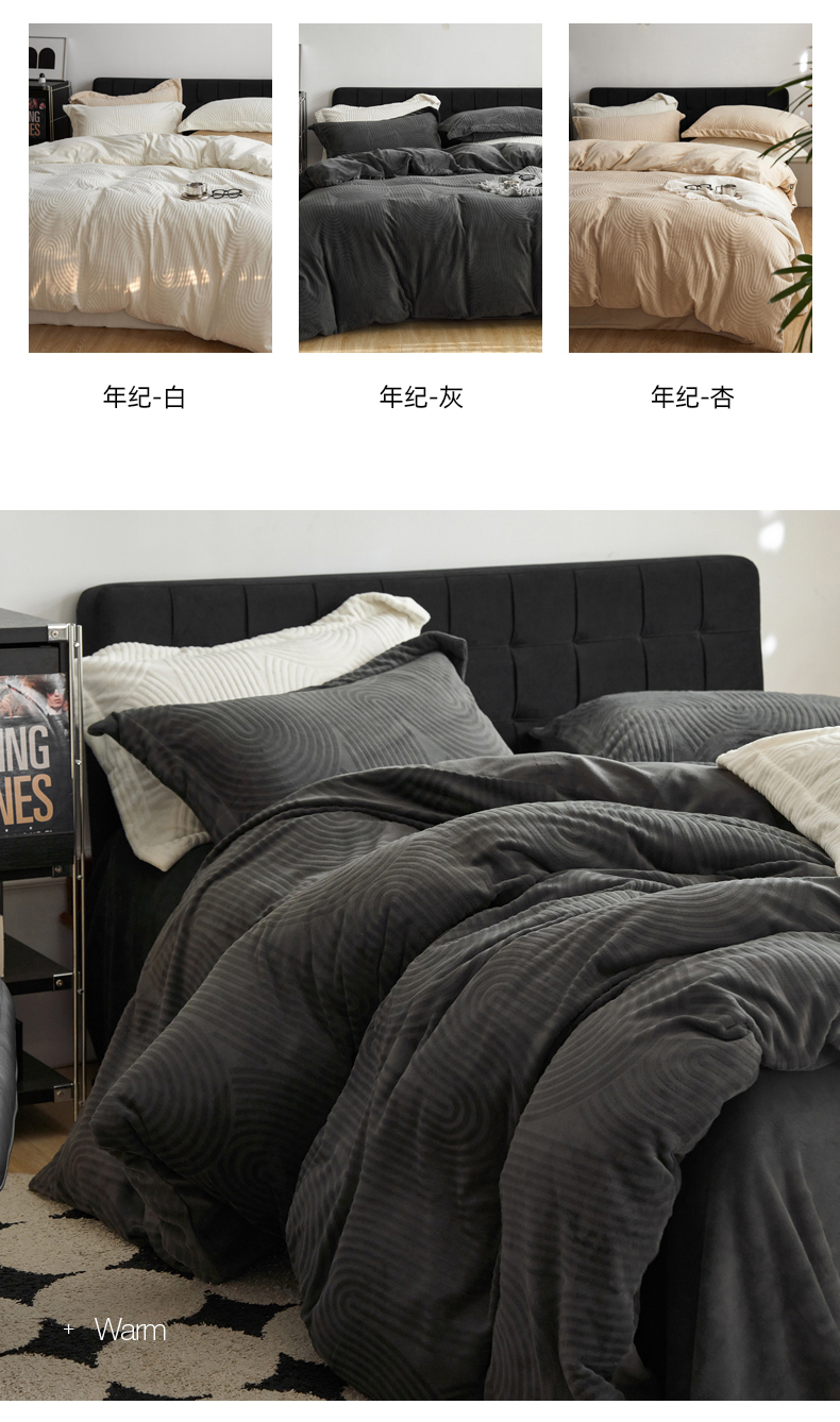 千朵森 2025新款高克重提花牛奶绒高品质四件套-年纪 年纪-灰