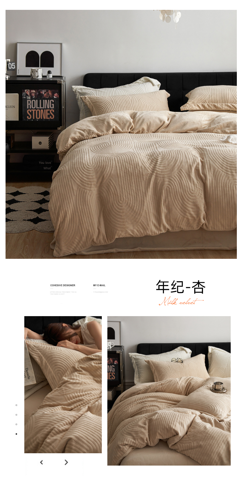 当前位置: 91家纺网 > 商品网购 > 床品套件 > 四件套 > 牛奶绒四件套 > 千朵森 2025新款高克重提花牛奶绒高品质四件套-年纪 年纪-灰
