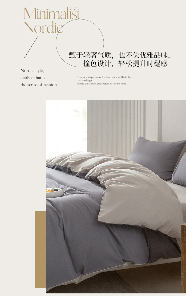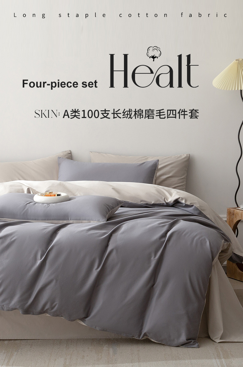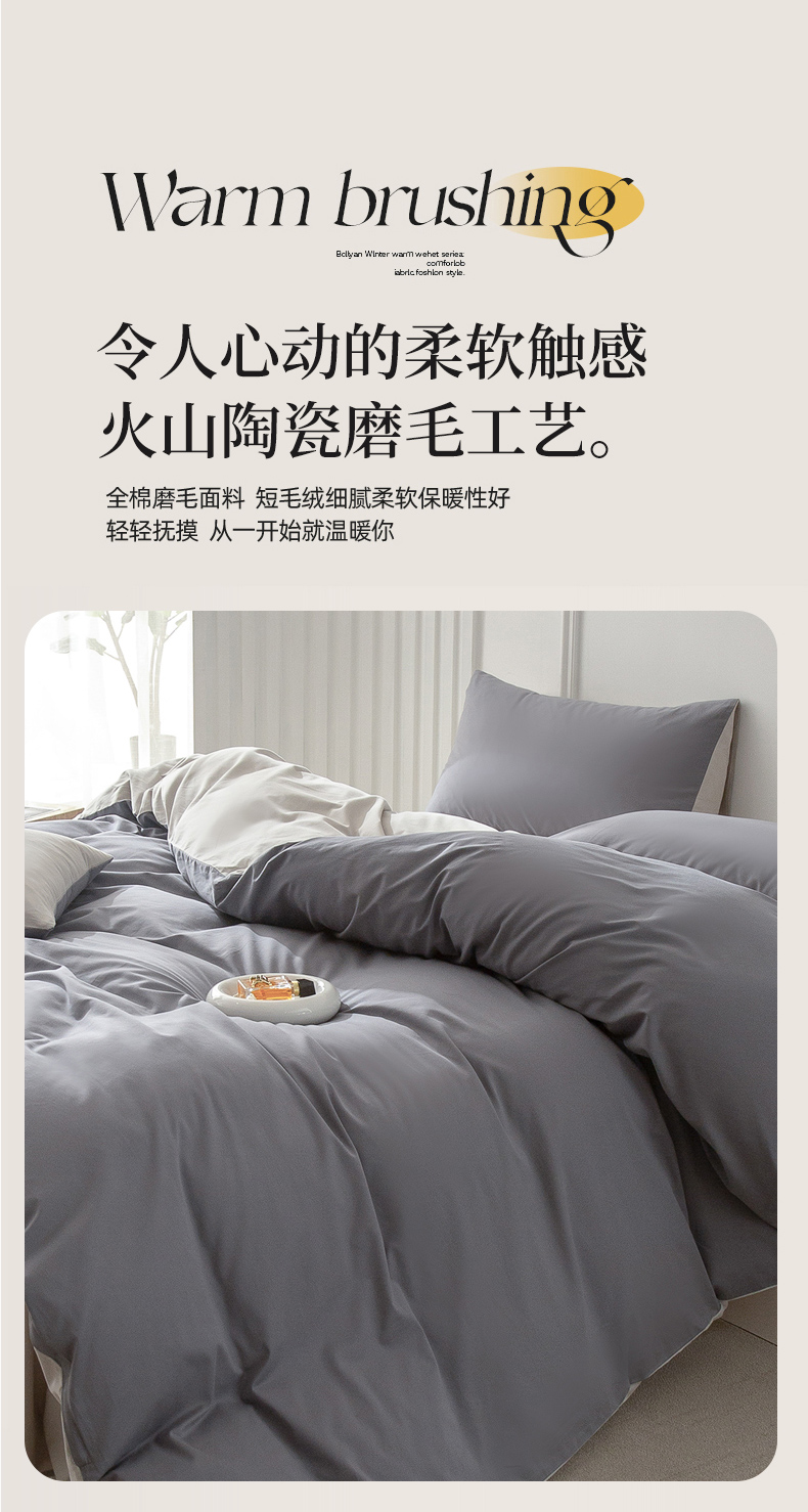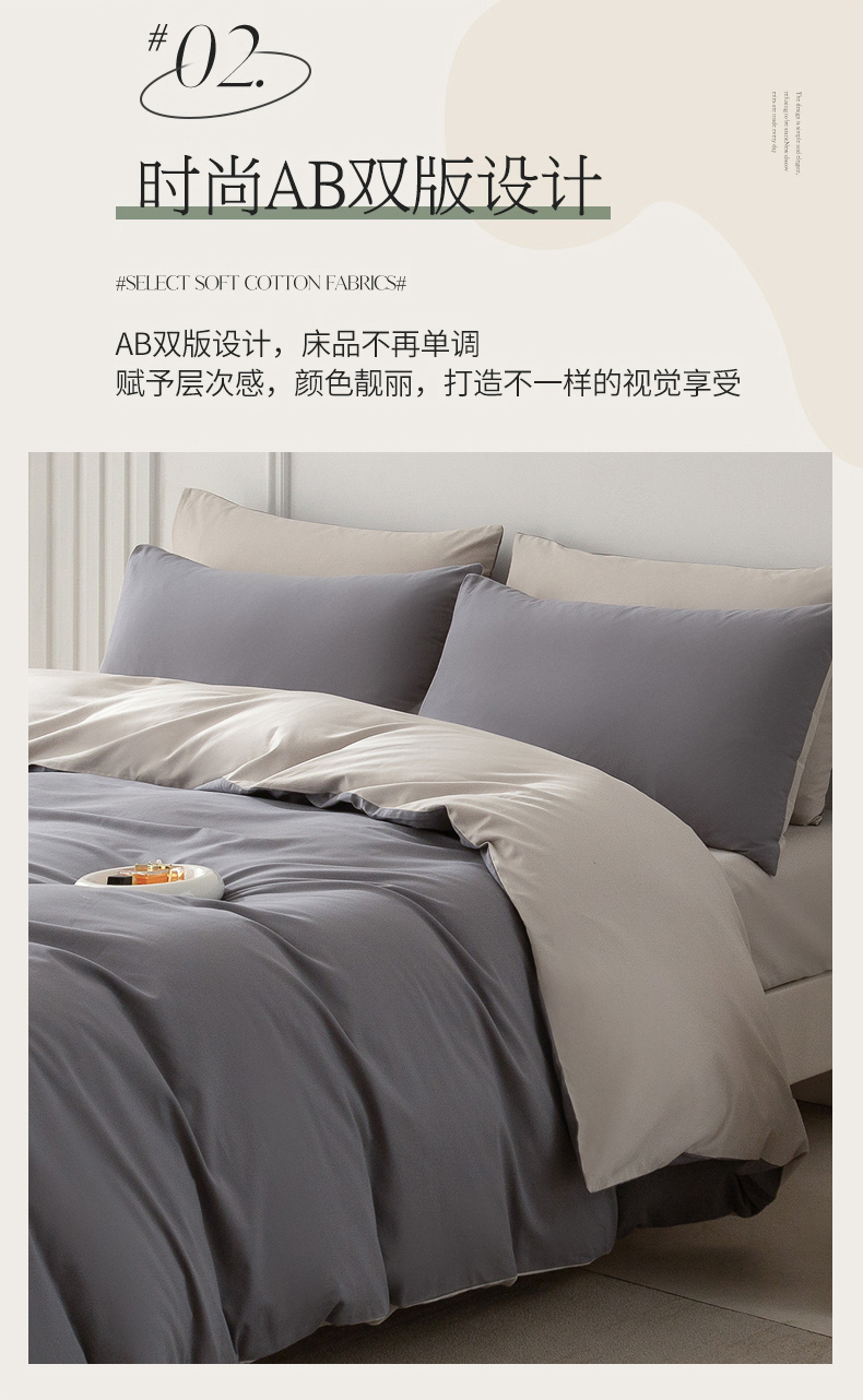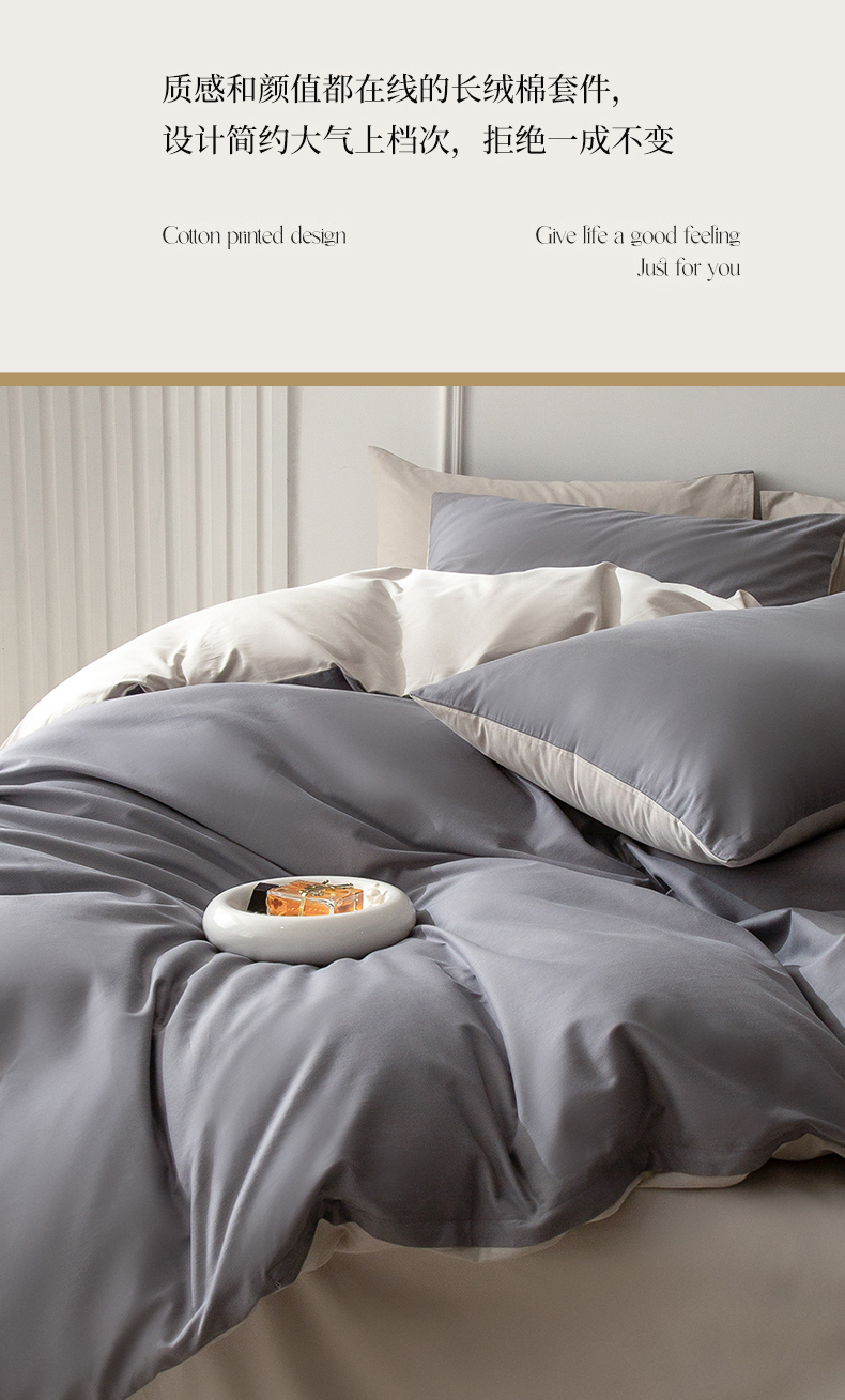 当前位置: 91家纺网 > 商品网购 > 床品套件 > 四件套 > 普通磨毛四件套 > ONE TWO ONE 121 2025新款A类高支高密长绒棉双拼磨毛(小cr )撞色四件套 高级灰白灰