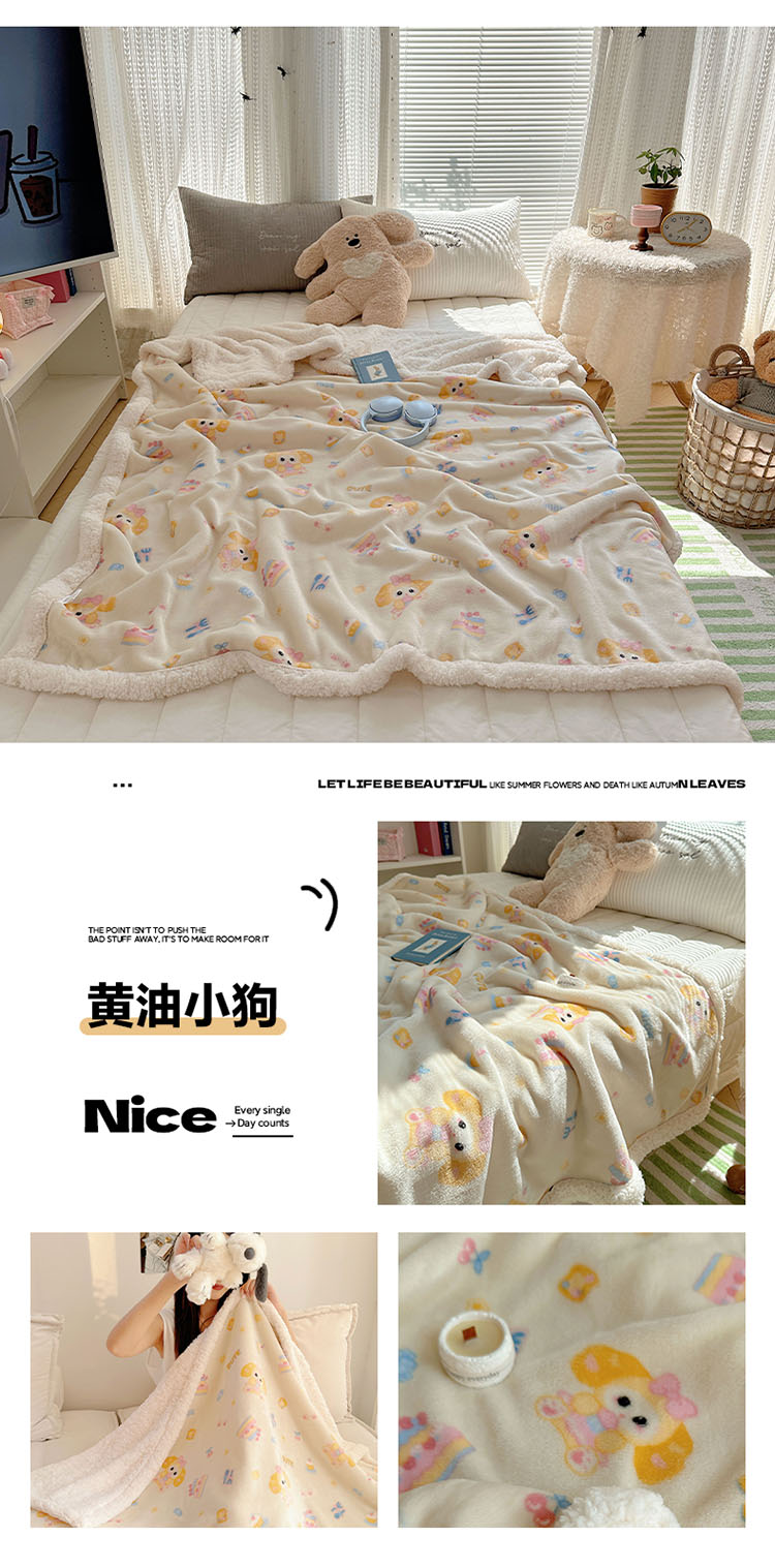 美乐迪 2025新款牛奶绒羊羔绒毛毯 黄油小狗